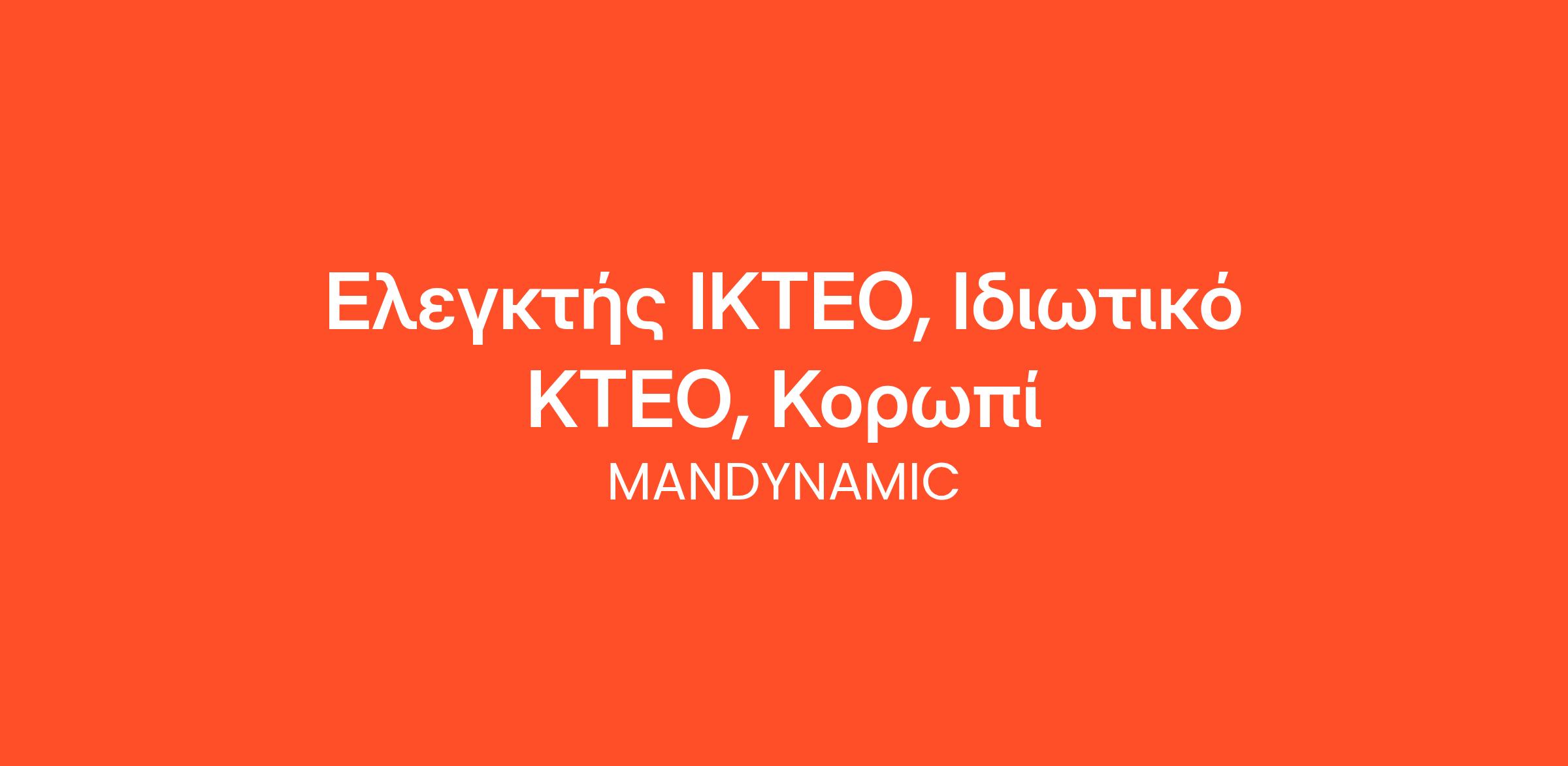 Η MANDYNAMIC αναζητά ελεγκτή ΙΚΤΕΟ εκ μέρους ιδιωτικού ΚΤΕΟ, στο Κορωπί Αττικής.