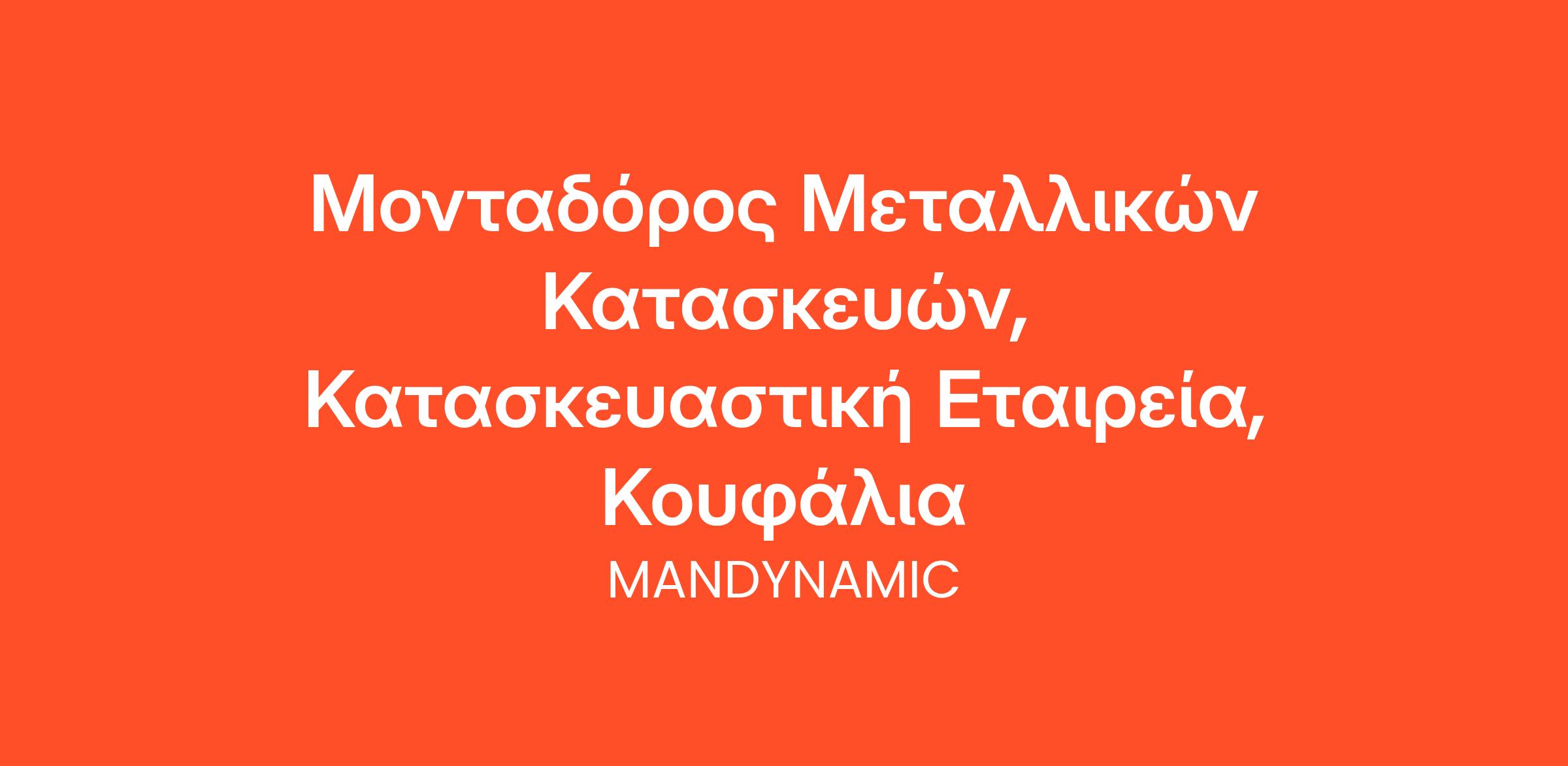 Η MANDYNAMIC αναζητά μονταδόρο μεταλλικών κατασκευών εκ μέρους κατασκευαστικής εταιρείας στην περιοχή των Κουφαλίων.