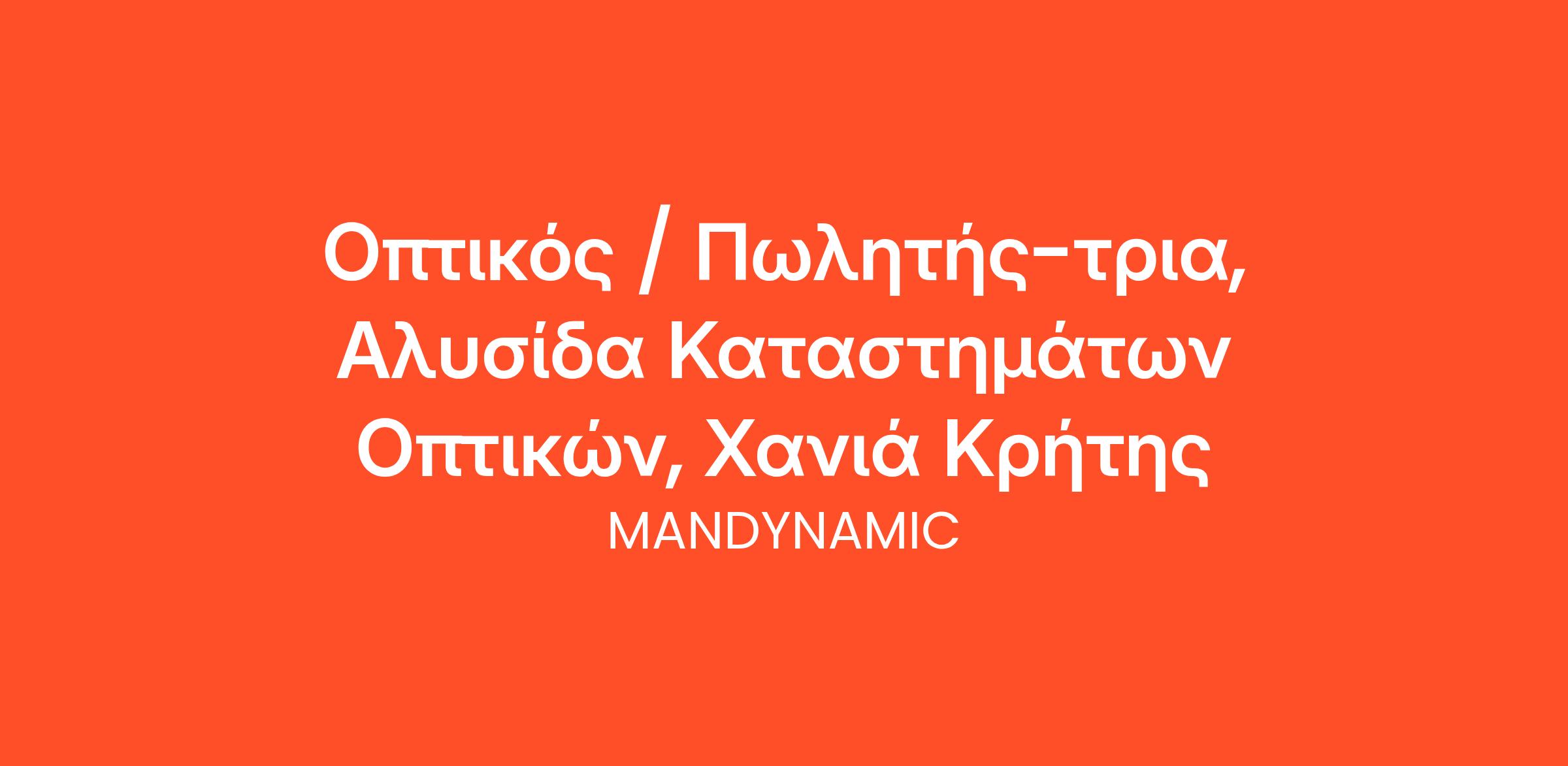 Η MANDYNAMIC αναζητά οπτικό / πωλητή-τρια οπτικών εκ μέρους μεγάλης αλυσίδας για την στελέχωση καταστήματος οπτικών στα Χανιά Κρήτης.