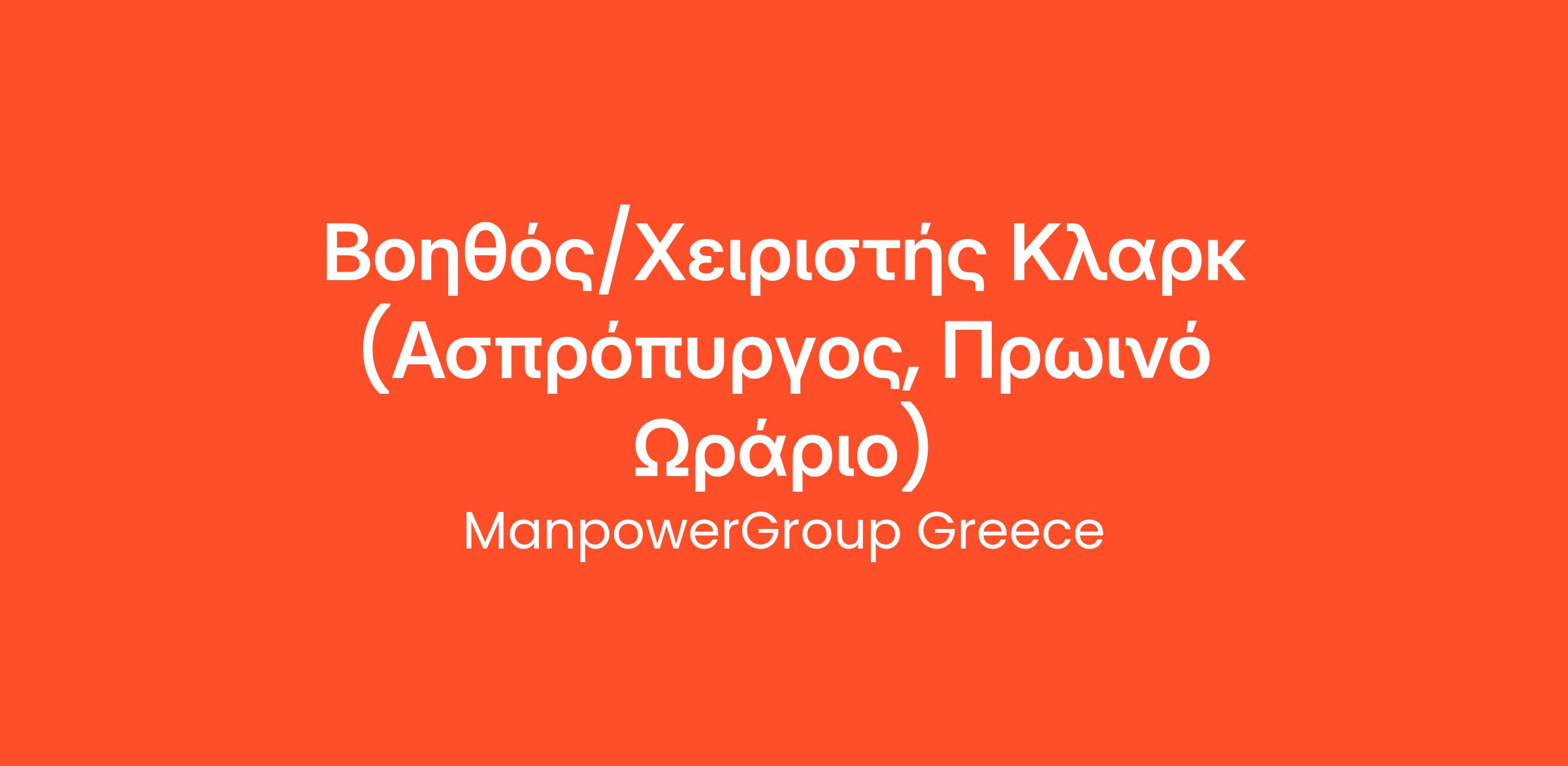 Η ManpowerGroup Greece, αναζητά Βοηθό/Χειριστή Κλαρκ, για λογαριασμό πελάτη της, που αποτελεί την κορυφαία Ελληνική εταιρία στον κλάδο των πλακιδίων και των ειδών υγιεινής.