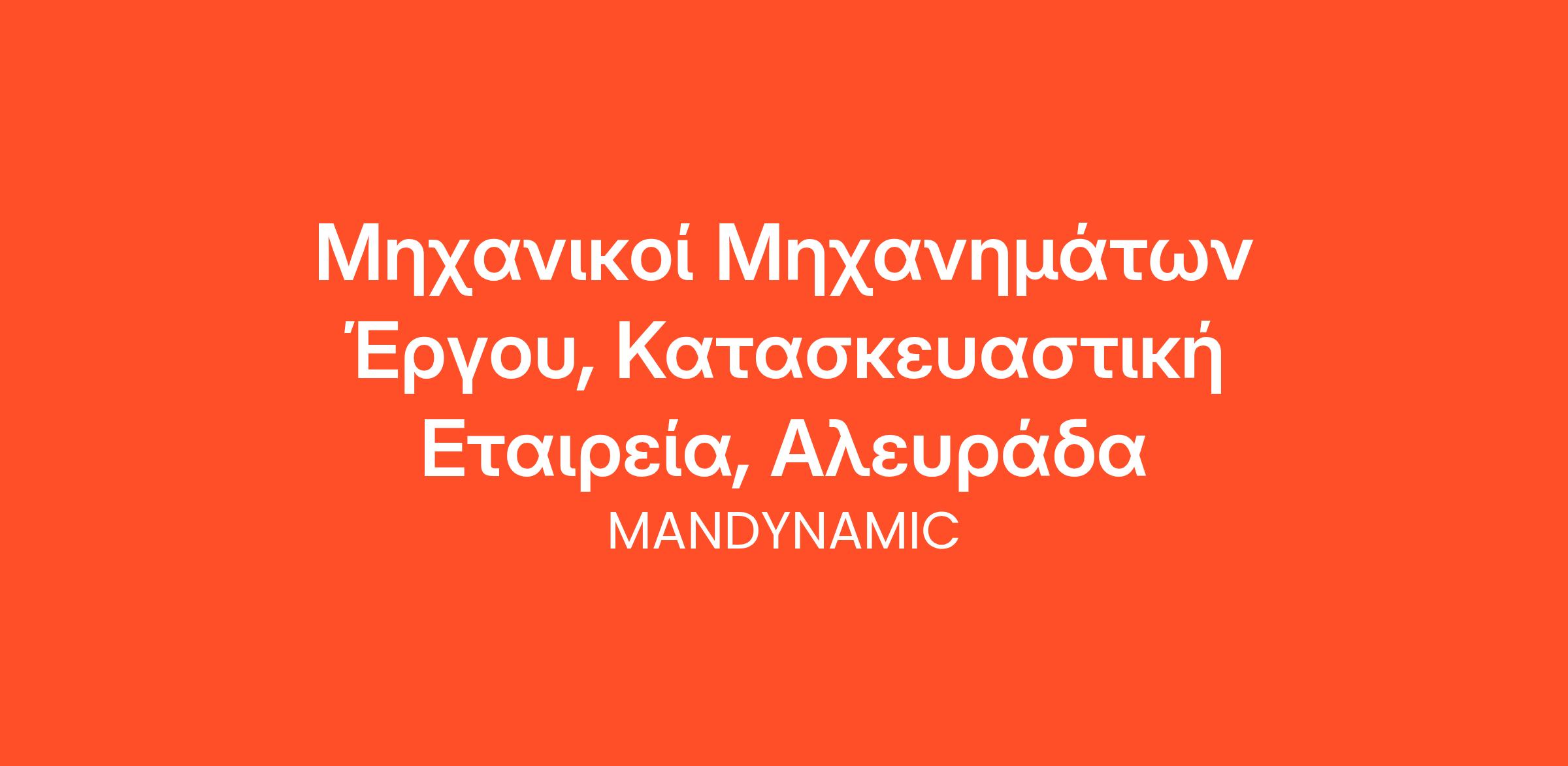 Η MANDYNAMIC αναζητά μηχανικούς μηχανημάτων έργου για λογαριασμό πολυεθνικής κατασκευαστικής εταιρείας, στην Αλευράδα.