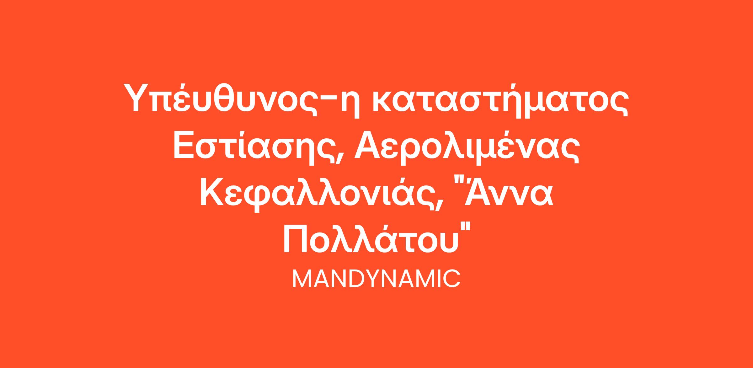 Η MANDYNAMIC αναζητά υπέυθυνο-η καταστήματος εστίασης, εκ μέρους καταστήματος εστίασης στον Αερολιμένα Κεφαλλονιάς, "Άννα Πολλάτου".