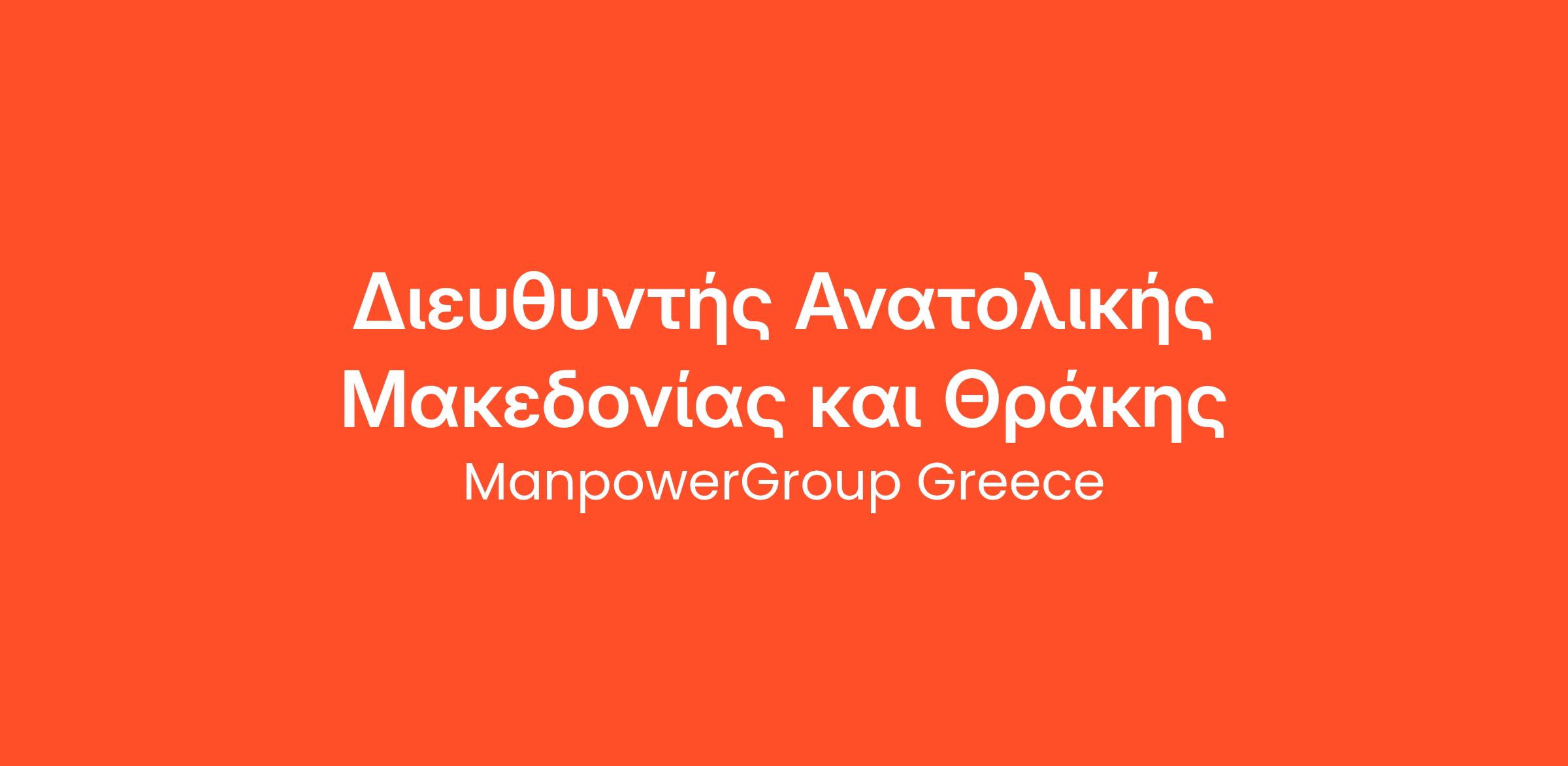 Η ManpowerGroup Greece, ηγέτιδα δύναμη στο χώρο του ανθρώπινου δυναμικού, αναζητά για λογαριασμό πελάτη της, εταιρίας αγροτικών προϊόντων και εφοδίων με σημαντική παρουσία στο χώρο της , Διευθυντή Ανατολικής Μακεδονίας και Θράκης.