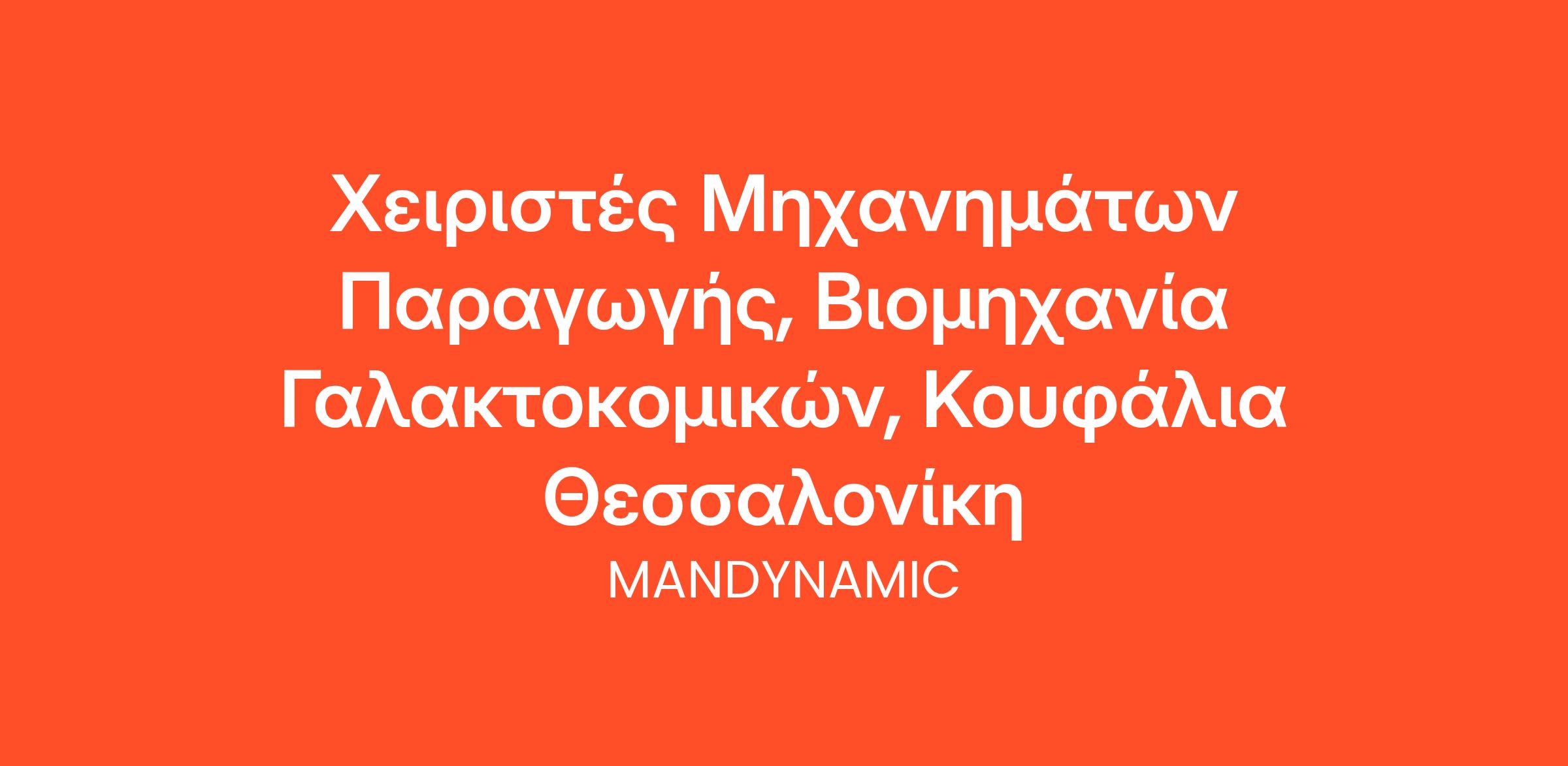 Η MANDYNAMIC αναζητά Χειριστές Μηχανημάτων Παραγωγής εκ μέρους Βιομηχανίας Γαλακτοκομικών, στα Κουφάλια Θεσσαλονίκης.