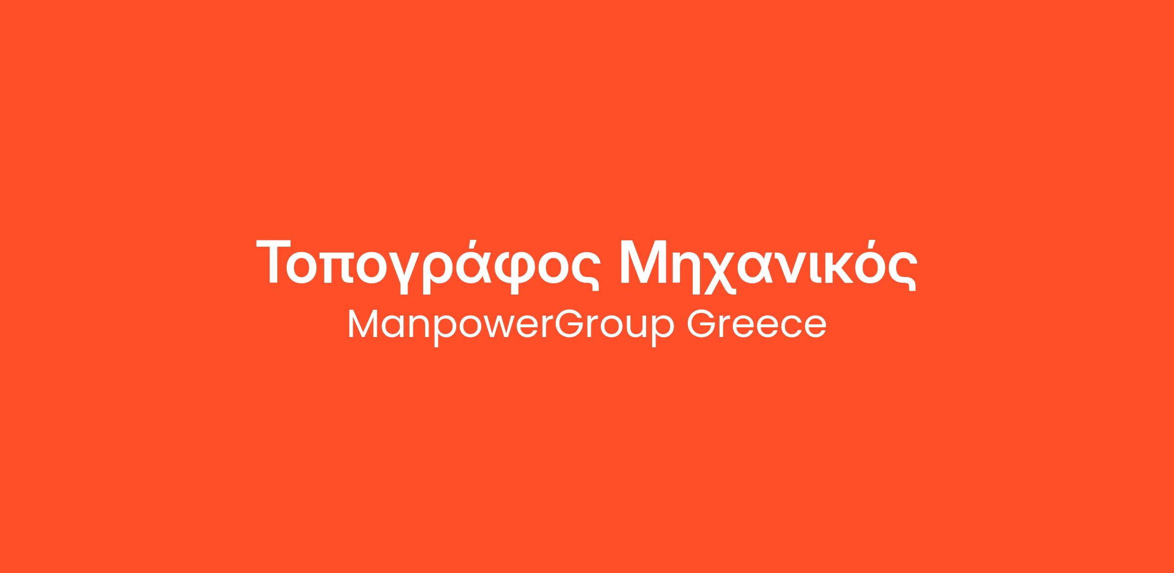Η ManpowerGroup Greece για λογαριασμό πελάτης της, κορυφαίας εταιρείας Παροχής Ηλεκτρικής Ενέργειας, αναζητά Τοπογράφο Μηχανικό.