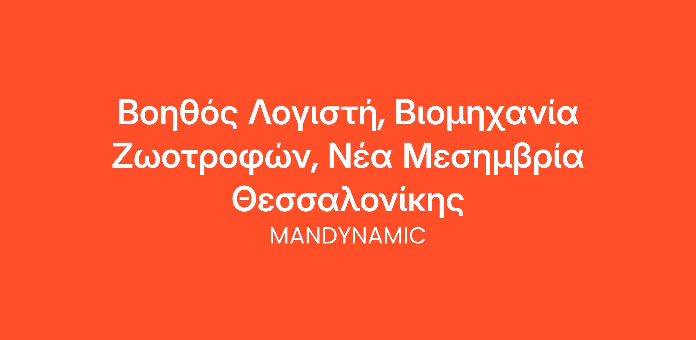 Η MANDYNAMIC αναζητά Βοηθό Λογιστή εκ μέρους Βιομηχανίας Ζωοτροφών στη Νέα Μεσημβρία Θεσσαλονίκης.