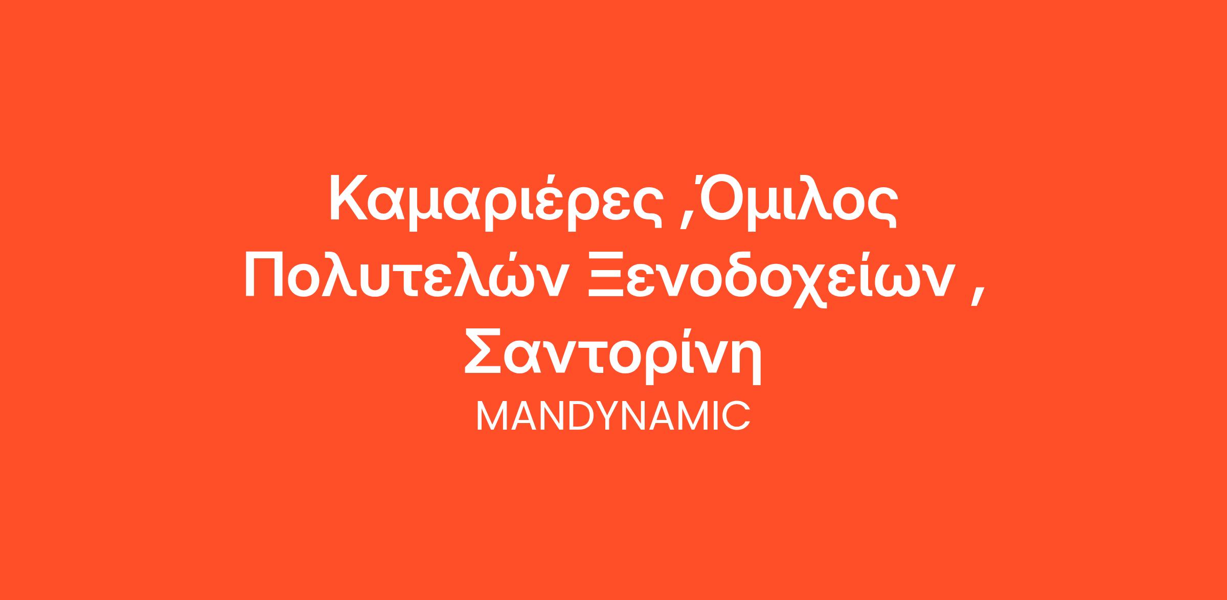 Η MANDYNAMIC αναζητά Καμαριέρες εκ μέρους Ομίλου Πολυτελών Ξενοδοχείων στη Σαντορίνη , για τη θερινή σεζόν Απρίλιος - Οκτώβριος 2025.