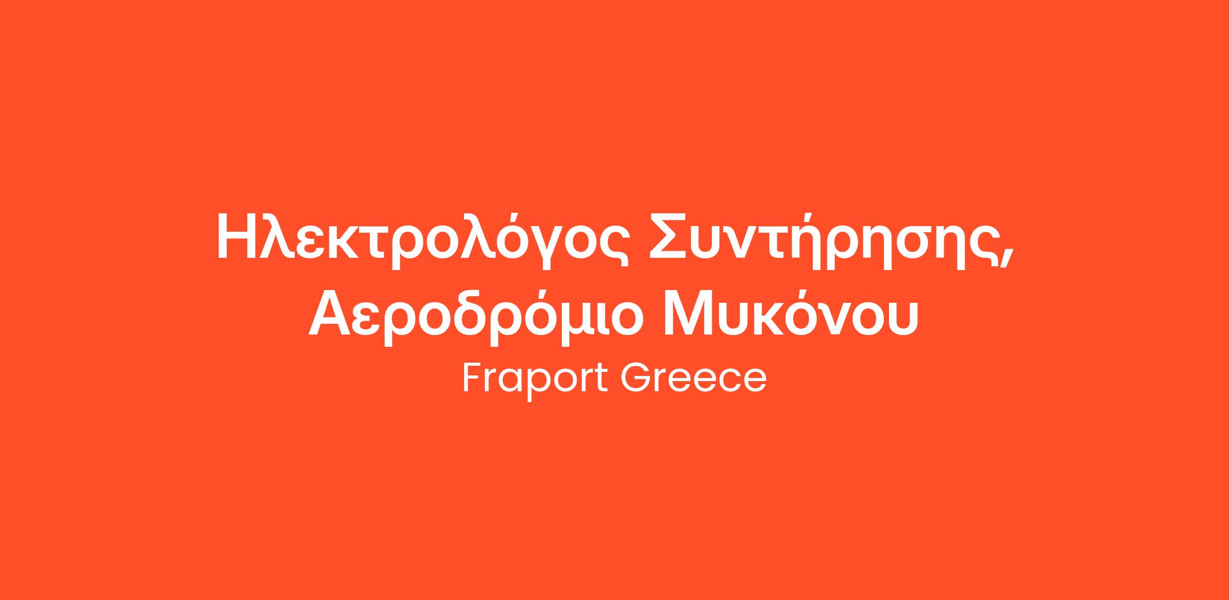 Η Fraport Greece, στο πλαίσιο της λειτουργίας και ανάπτυξης των 14 Περιφερειακών Αεροδρομίων, αναζητάει Ηλεκτρολόγο Συντήρησης για το Αεροδρόμιο της Μυκόνου.
