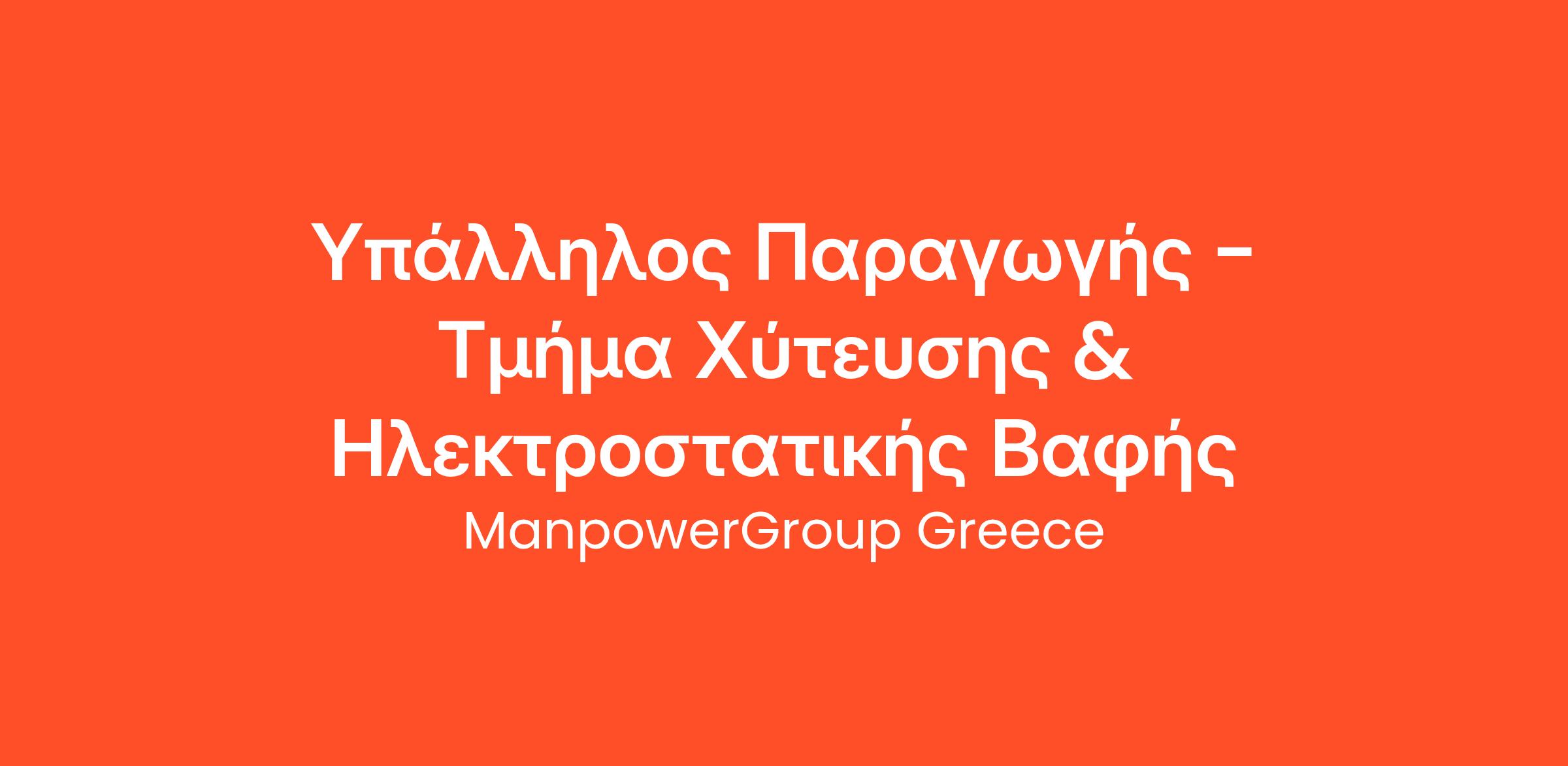 Η ManpowerGroup Greece, για λογαριασμό πελάτη της, κορυφαία ελληνική εταιρεία η οποία δραστηριοποιείται στο χώρο της κατεργασίας μετάλλων, αναζητά Υπάλληλο Παραγωγής.
