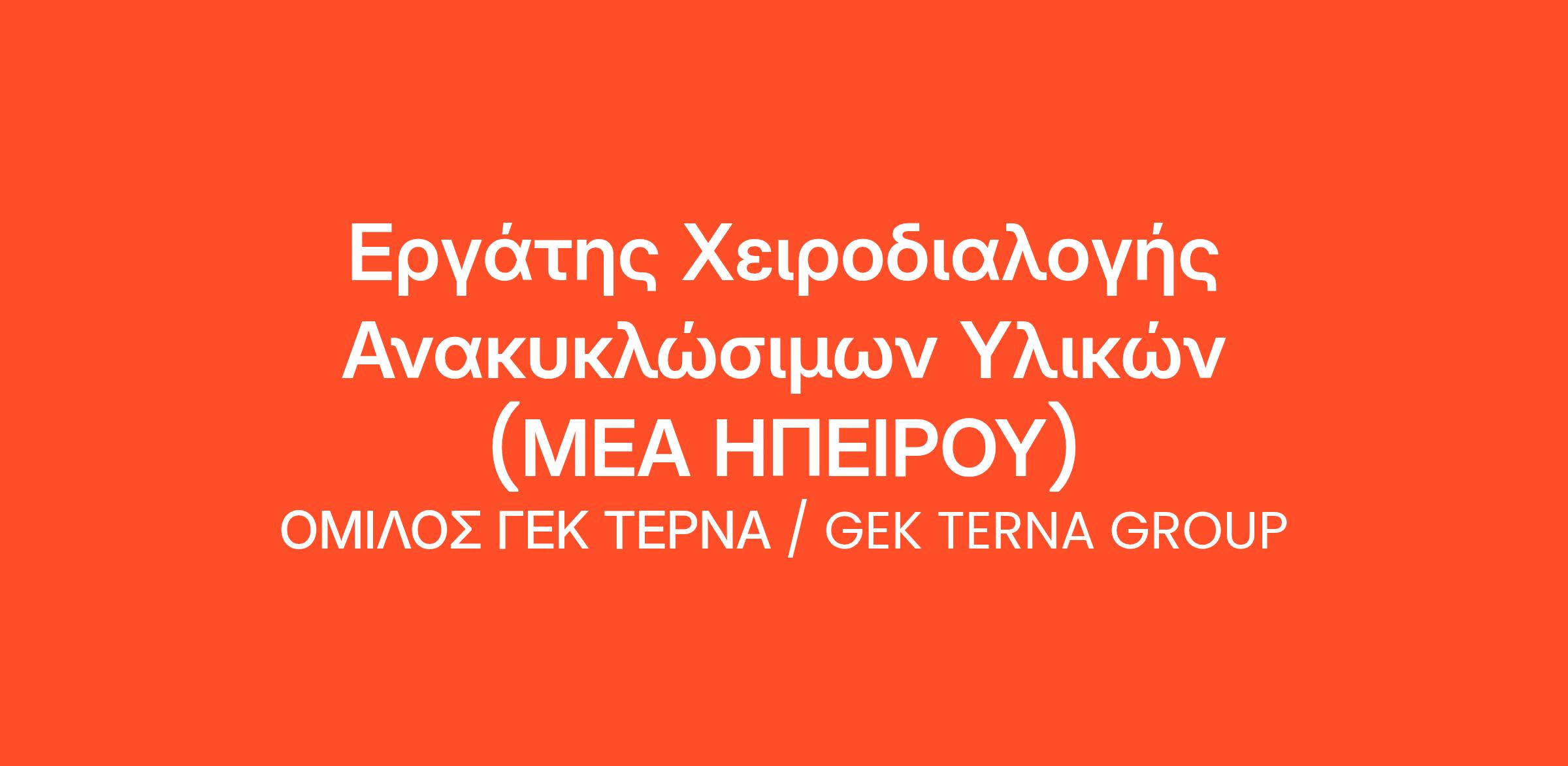 Η ΤΕΡΝΑ ΕΝΕΡΓΕΙΑΚΗ ΔΙΑΧΕΙΡΙΣΗ ΠΑΓΙΩΝ, εταιρεία του Ομίλου ΓΕΚ ΤΕΡΝΑ, αναζητά: