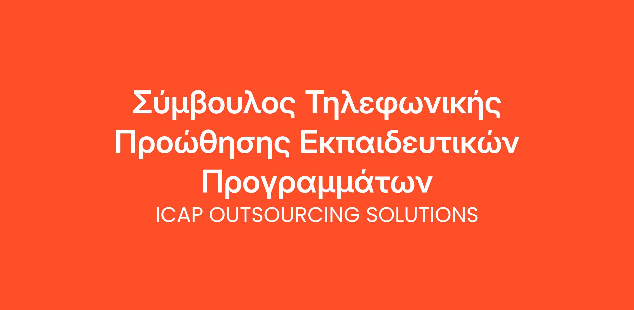 Η ICAP Training, μέλος του ομίλου ICAP People Solutions με μεγάλη εμπειρία και εξειδίκευση στο χώρο της εκπαίδευσης των Πωλήσεων, των Διαπραγματεύσεων και της Επικοινωνίας αναζητά, «Σύμβουλος Τηλεφωνικής Προώθησης Εκπαιδευτικών Προγραμμάτων» για λογαριασμό του ομίλου.