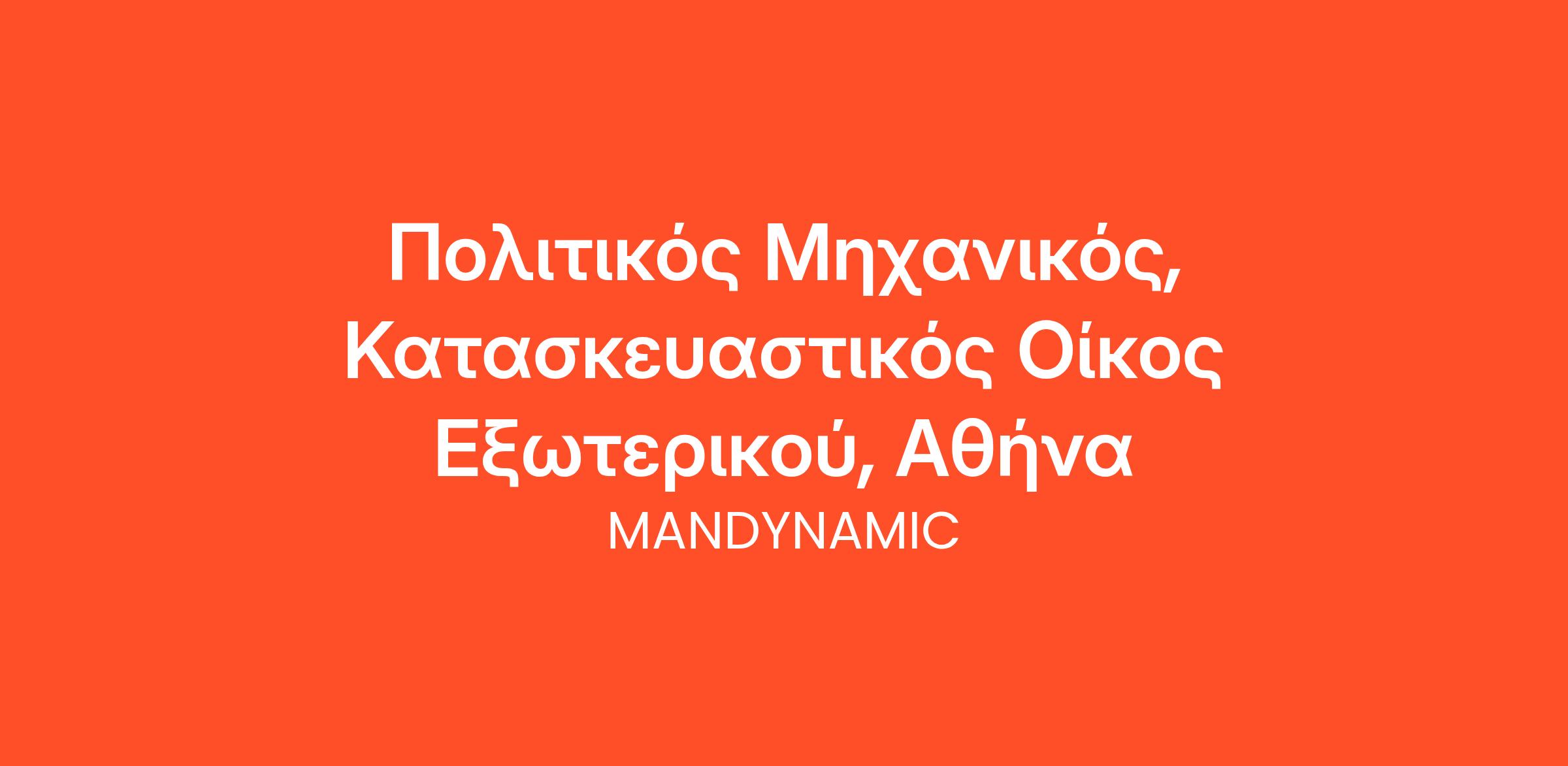 Η MANDYNAMIC αναζητά Πολιτικό μηχανικό, για λογαριασμό κατασκευαστικού οίκου του εξωτερικού, στην Αθήνα.