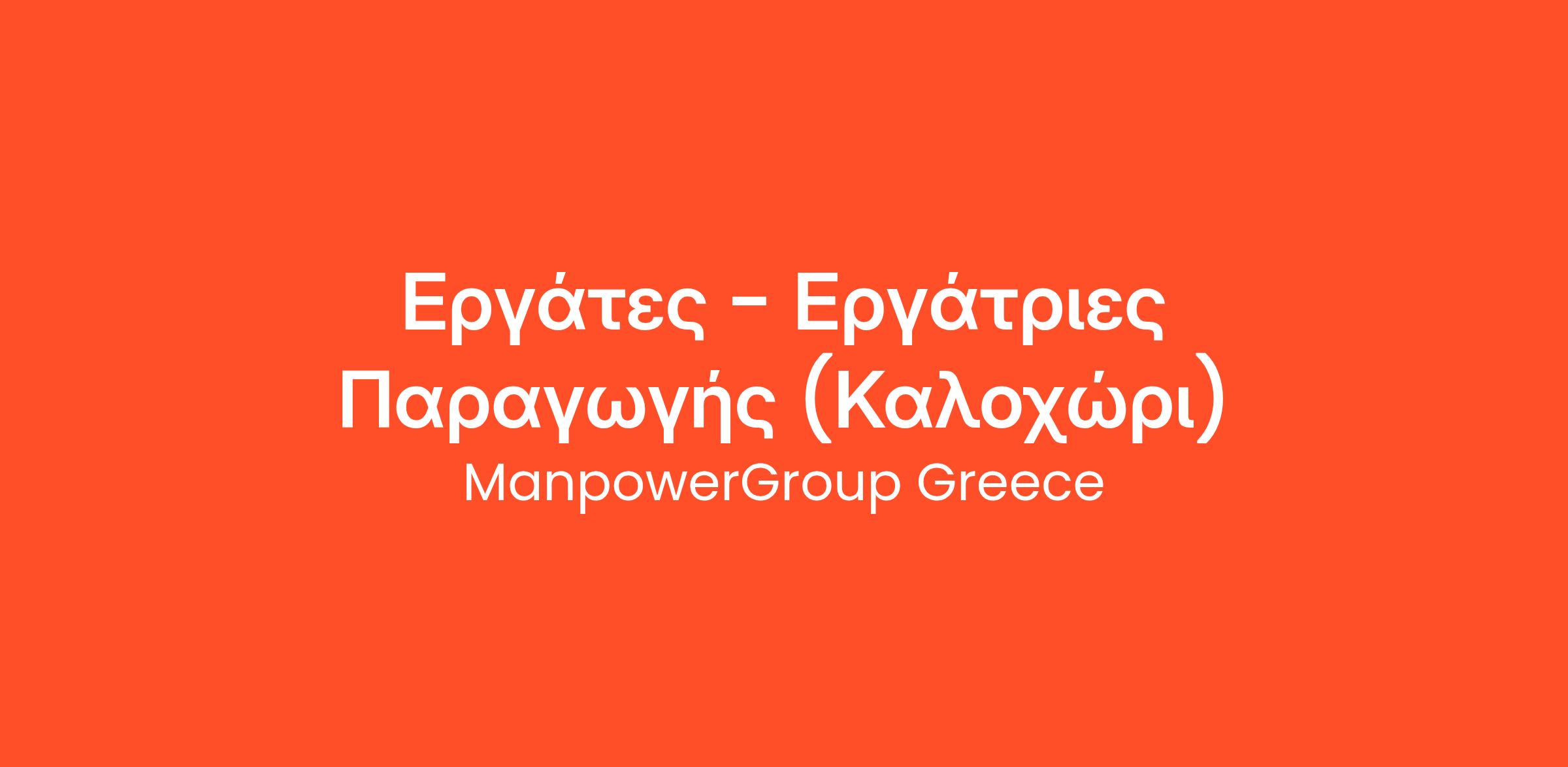 Η ManpowerGroup για λογαριασμό πελάτη της, εταιρεία που δραστηριοποιείται στον χώρο της παραγωγής και εμπορίας τροφίμων, αναζητά Εργάτες / Εργάτριες Παραγωγής πλήρους απασχόλησης για τη στελέχωση του τμήματος Παραγωγής. Οι εγκαταστάσεις της εταιρείας βρίσκονται στην περιοχή του Καλοχωρίου Θεσσαλονίκης.