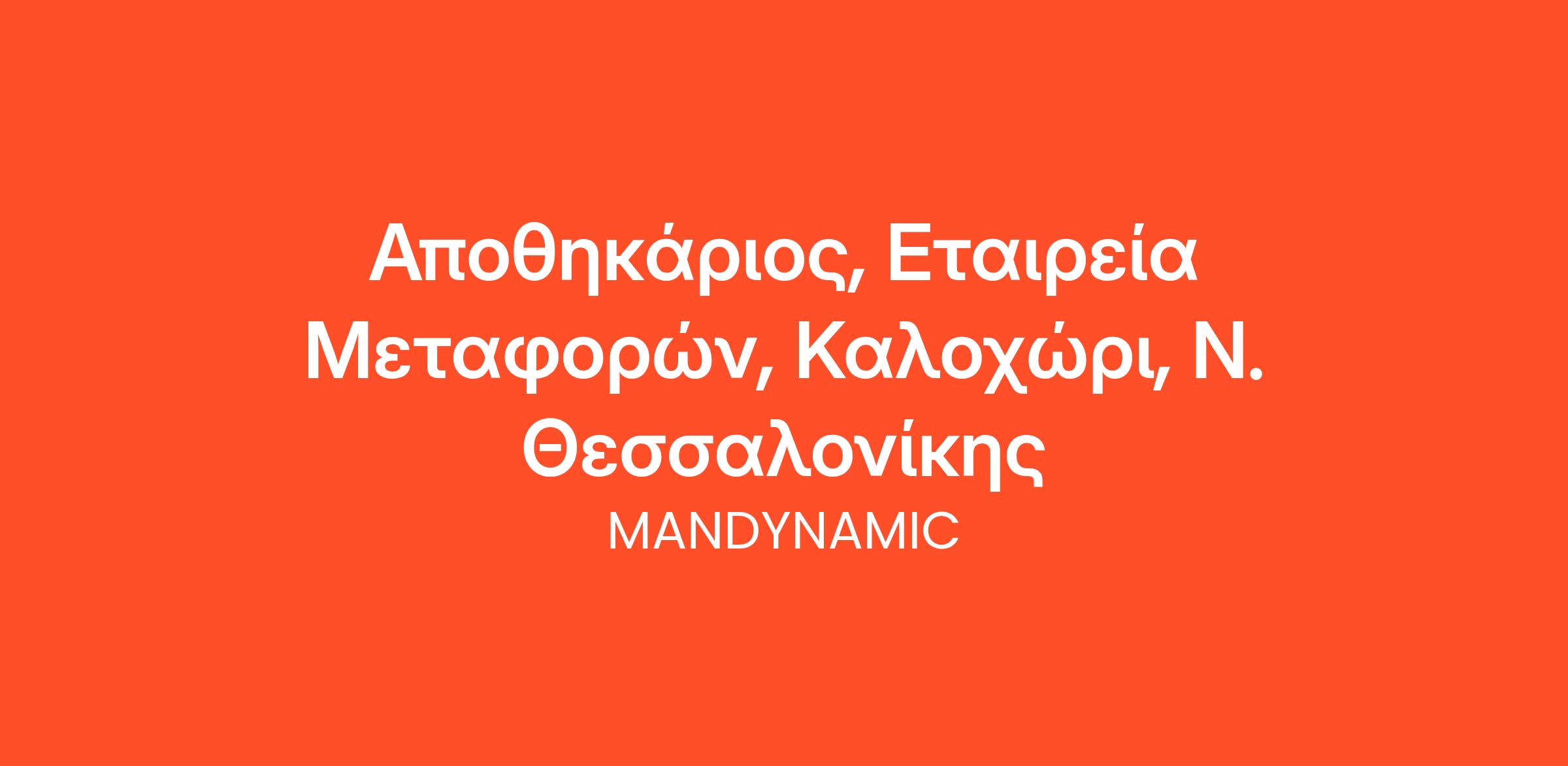 Η MANDYNAMIC αναζητά αποθηκάριο εκ μέρους εταιρείας μεταφορών, στο Καλοχώρι Θεσσαλονίκης.