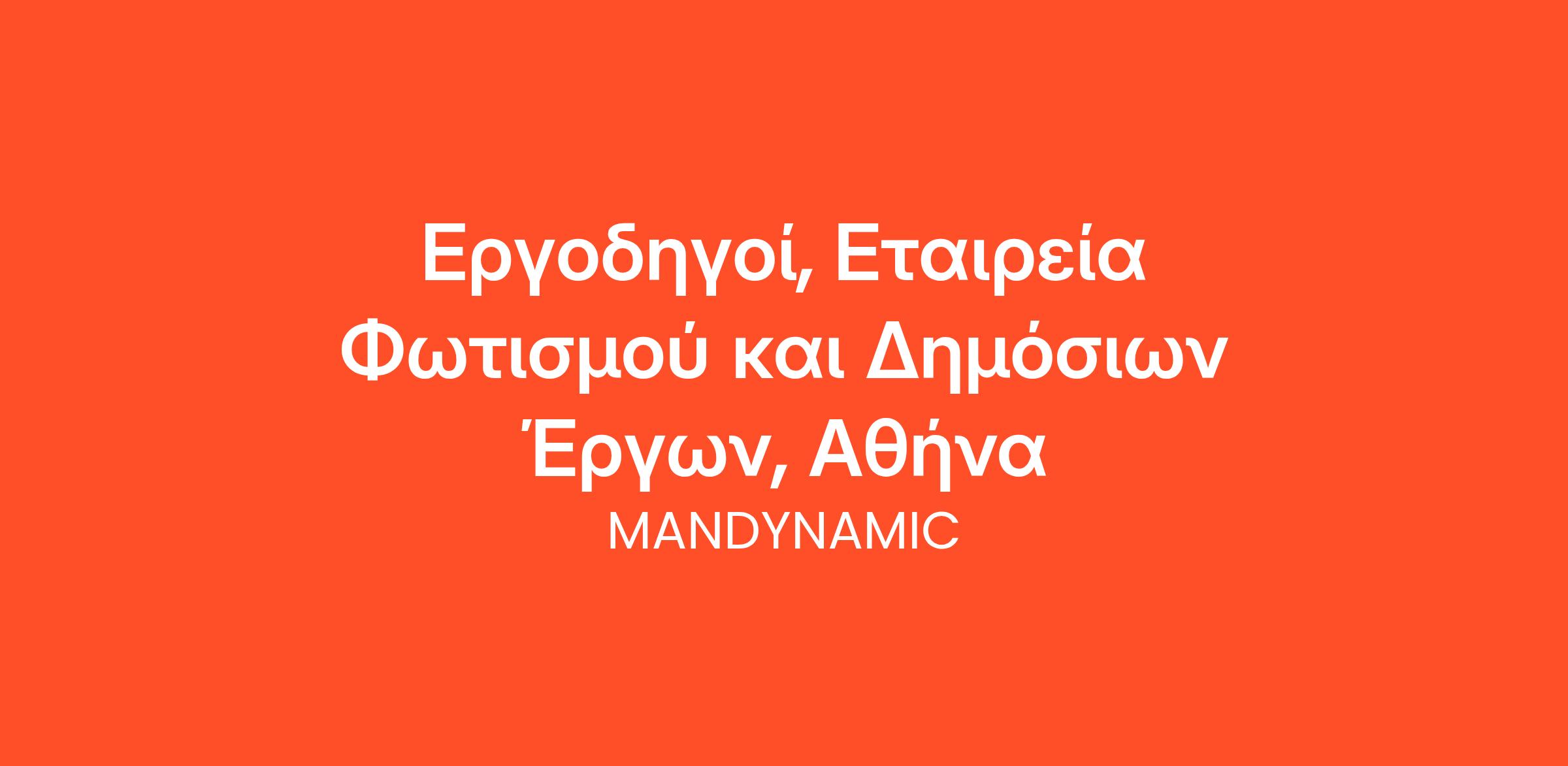 Η MANDYNAMIC αναζητά Εργοδηγούς, εκ μέρους Εταιρείας Φωτισμού και Δημόσιων Έργων, στην Αθήνα.