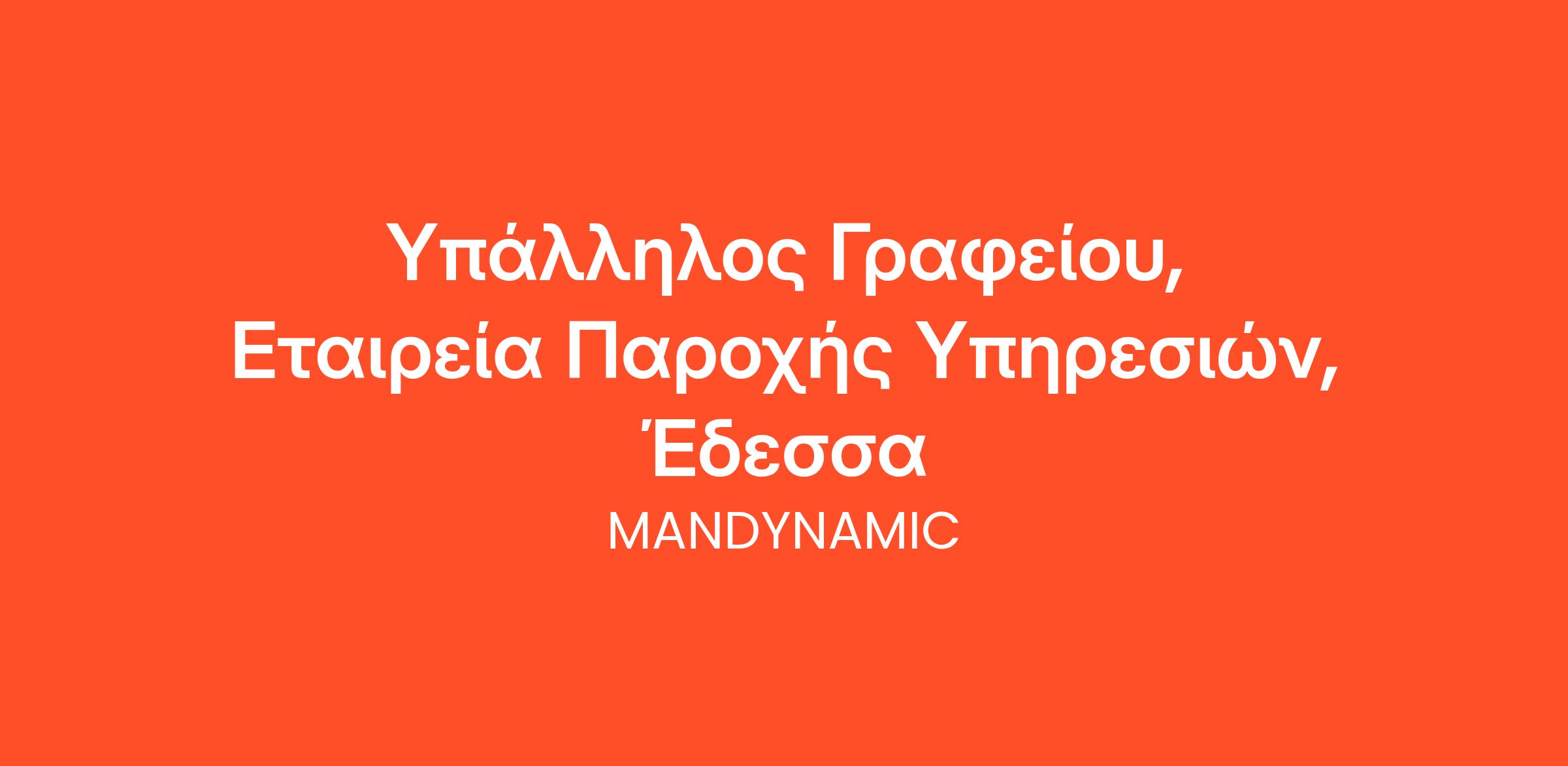 Η MANDYNAMIC αναζητά υπάλληλο γραφείου εκ μέρους Εταιρείας Παροχής Υπηρεσιών, στην Έδεσσα.