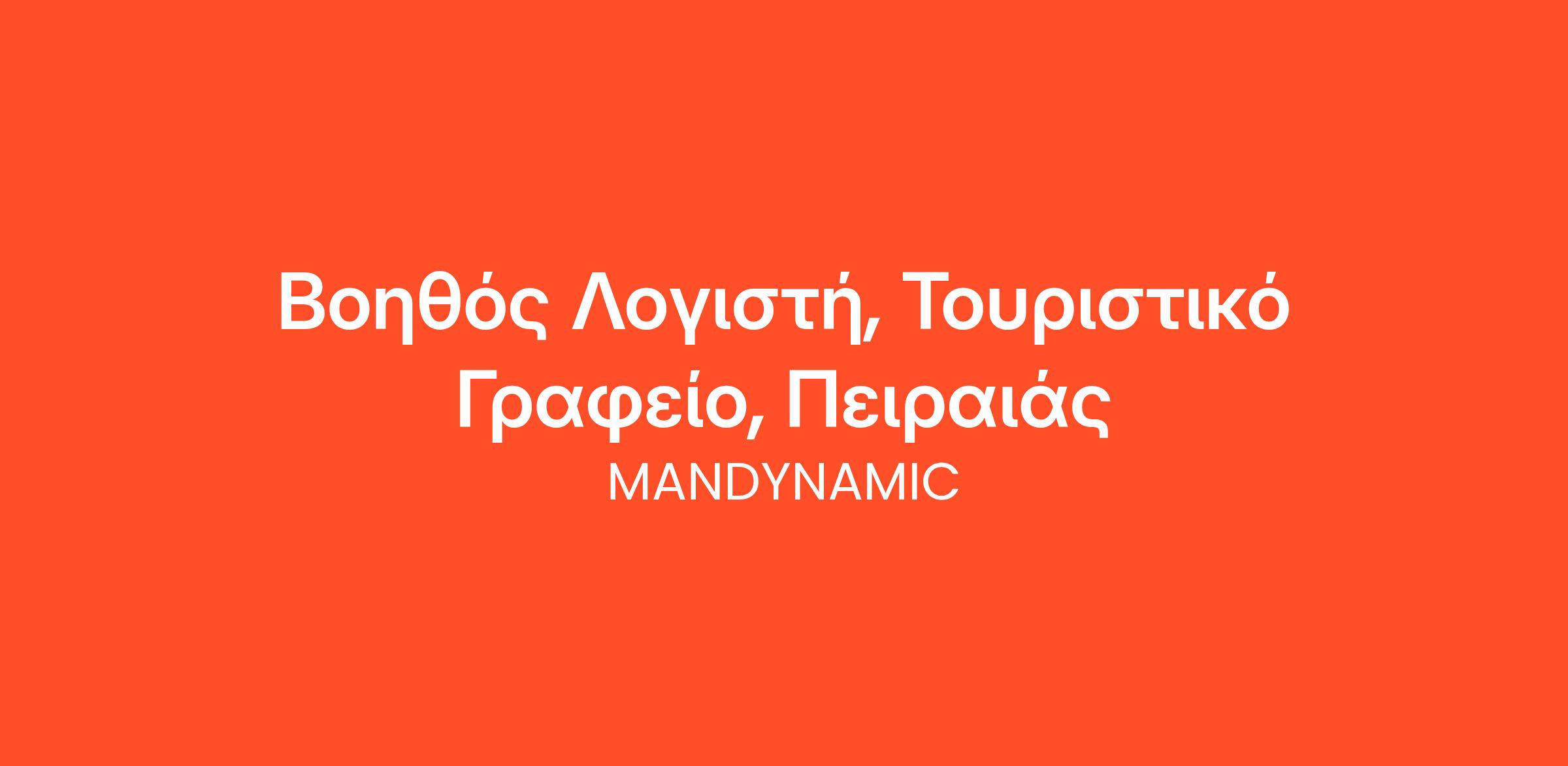 Η MANDYNAMIC αναζητά βοηθό λογιστή εκ μέρους τουριστικού γραφείου στον Πειραιά.