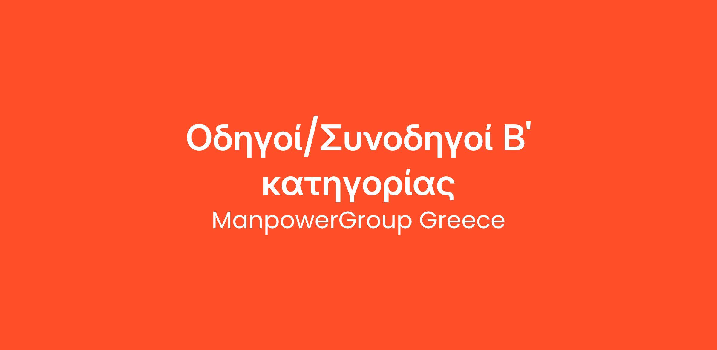 Η ManpowerGroup Greece, αναζητά για λογαριασμό πελάτη της, μία από τις μεγαλύτερες εταιρείες χονδρικού εμπορίου, να στελεχώσει τις θέσεις Οδηγών και Συνοδηγών Β’ κατηγορίας.