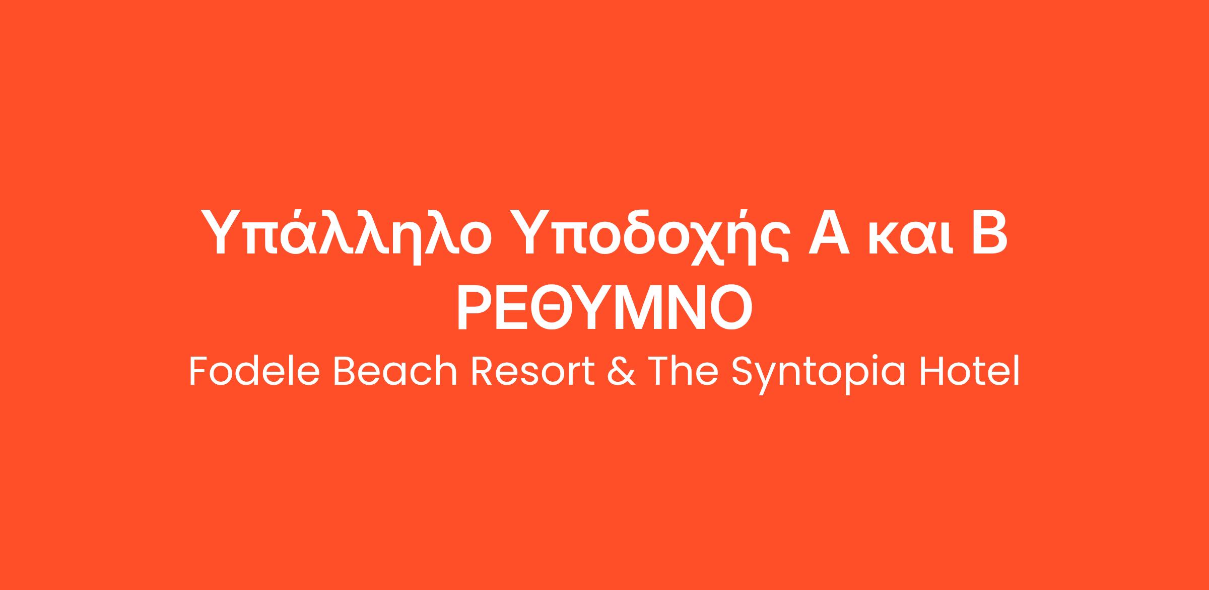 Το ξενοδοχείο 4* The Syntopia Hotelστο Ρέθυμνο επιθυμεί να προσλάβει για τη σεζόν 2026: Υπάλληλο Υποδοχής Α’ και Β’