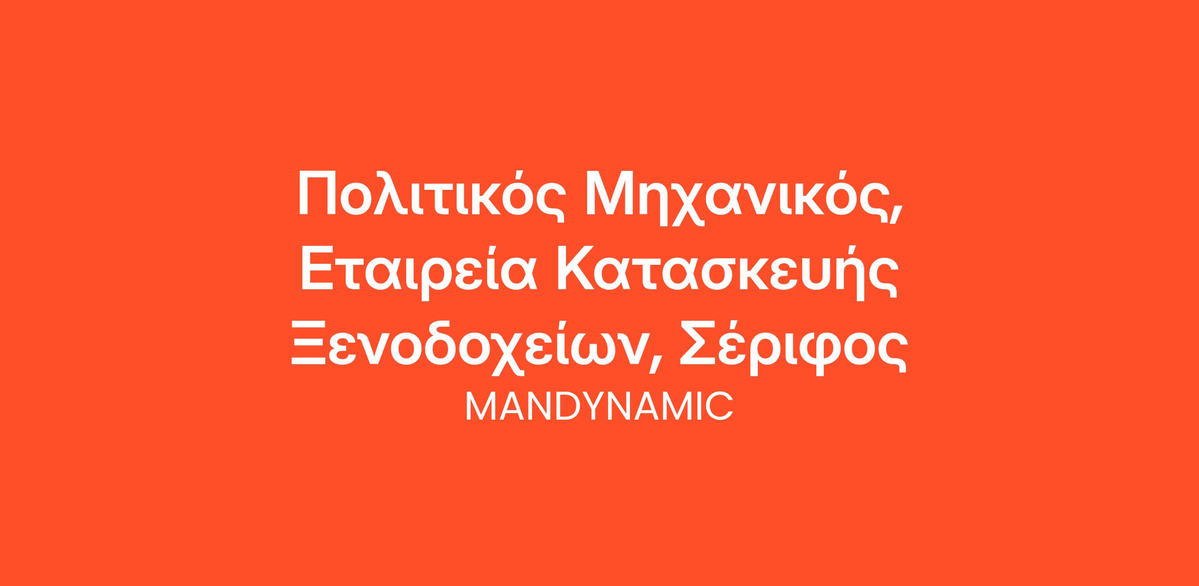 Η MANDYNAMIC είναι η μεγαλύτερη εταιρεία ανθρώπινου δυναμικού στην Ελλάδα, που εξειδικεύεται στα πεδία της αναζήτησης και της διάθεσης προσωπικού. Στην πολυετή λειτουργία της, η εταιρεία έχει εξυπηρετήσει αποτελεσματικά περισσότερες από 3.700 επιχειρήσεις και έχει διαθέσει πάνω από 90.000 εργαζόμενους.