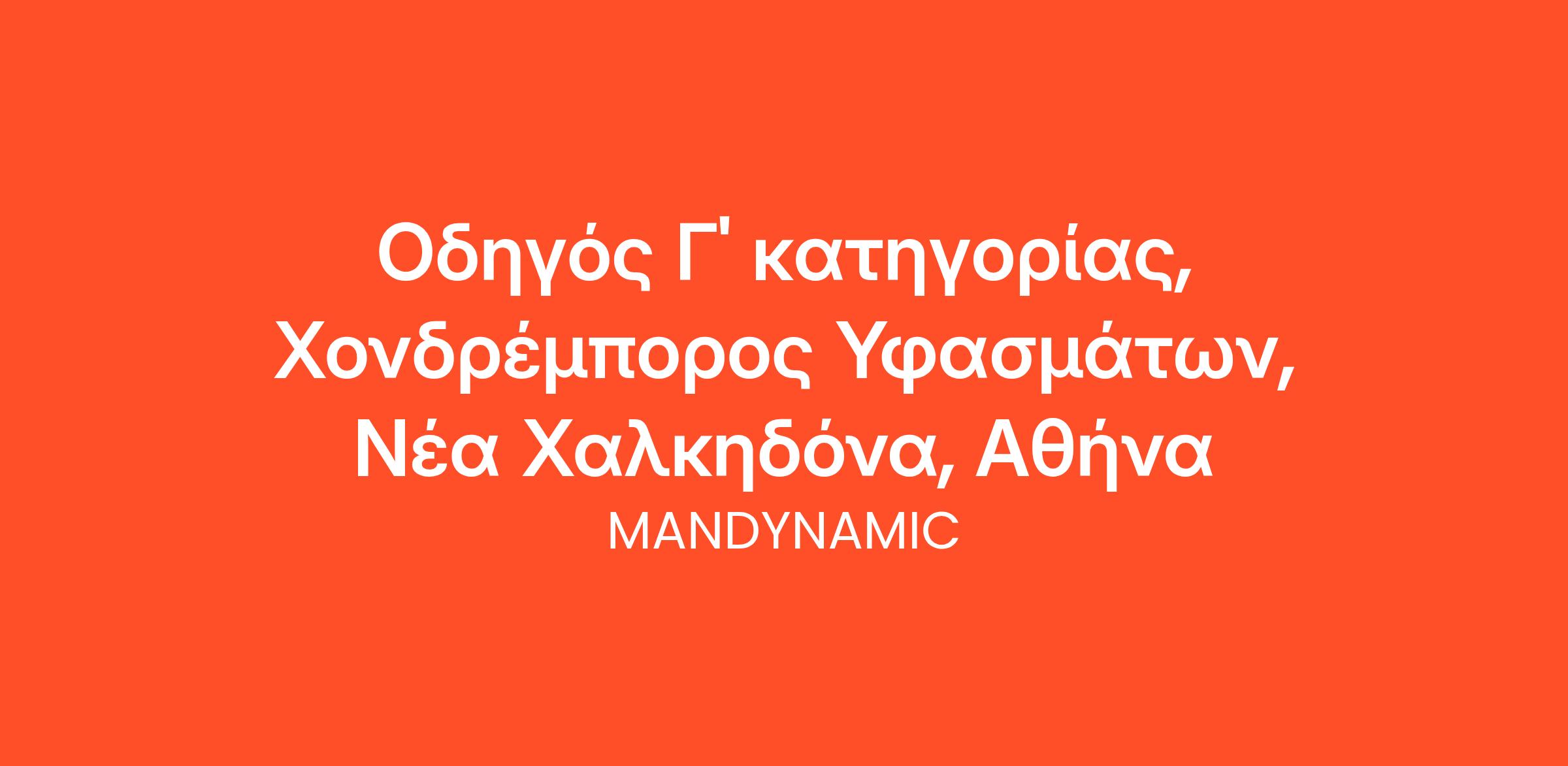 Η MANDYNAMIC αναζητά Οδηγούς Γ' κατηγορίας εκ μέρους Χονδρέμπορου Υφασμάτων στη Νέα Χαλκηδόνα, Αθήνα.