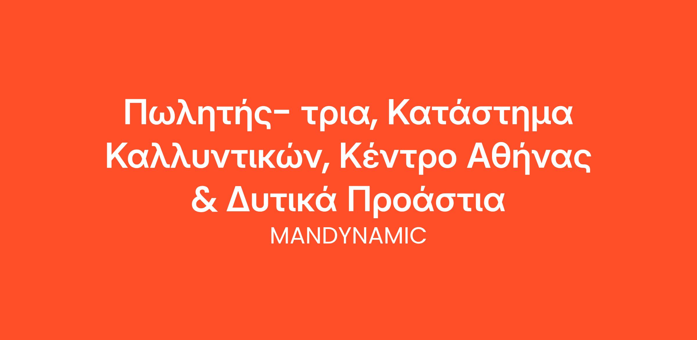 Η MANDYNAMIC αναζητά Πωλητές & Πωλήτριες εκ μέρους μεγάλης αλυσίδας καλλυντικών για τα νέα καταστήματά της στις περιοχές: Πειραιάς & Αχαρναί.