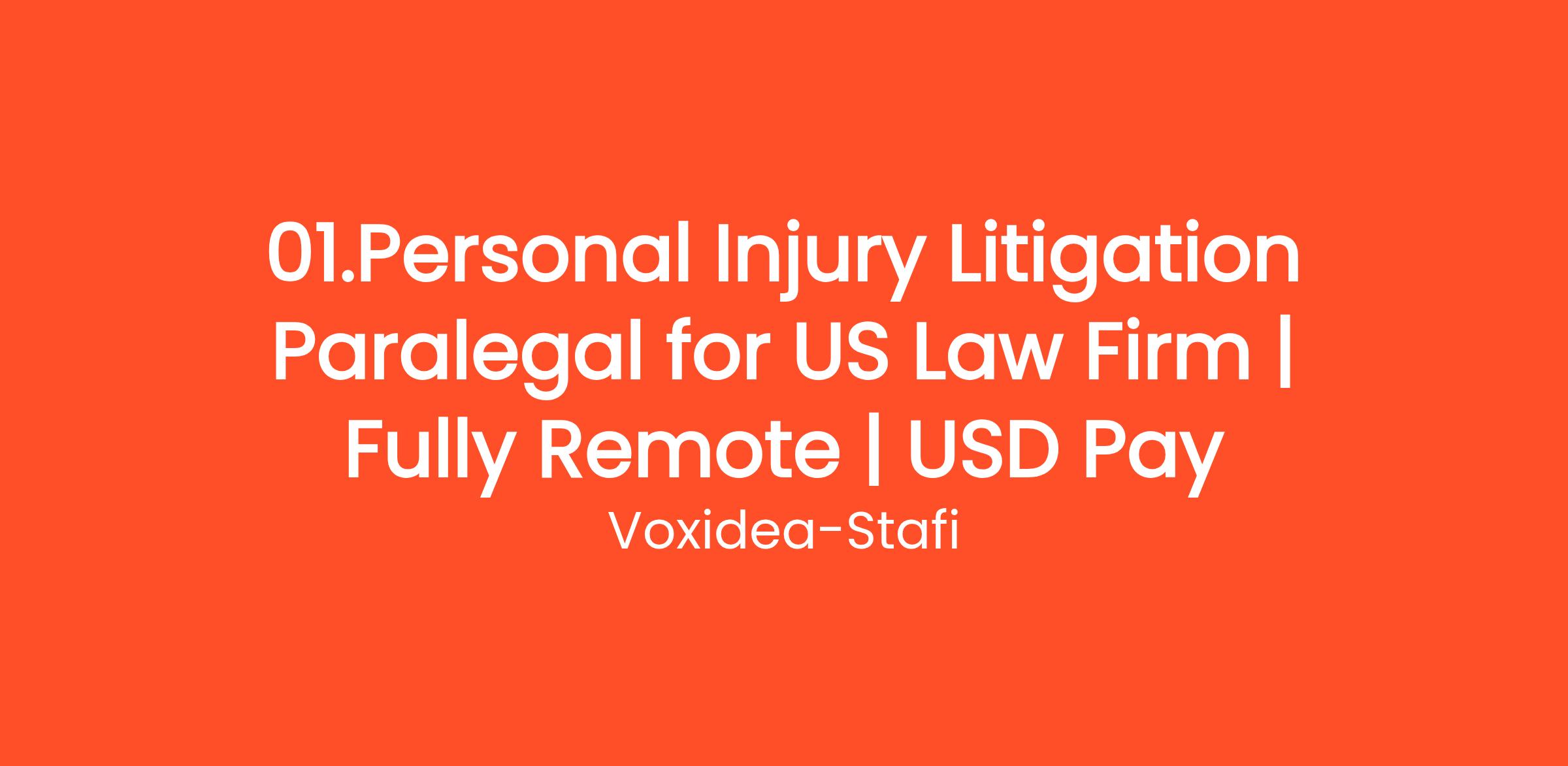 Join Voxidea as a Personal Injury Paralegal and support attorneys in law firms by managing case documents, conducting legal research, and assisting with the discovery process. Collaborate in a fully remote role while earning in USD. Ready to make an impact? Apply today! 🚀✨
