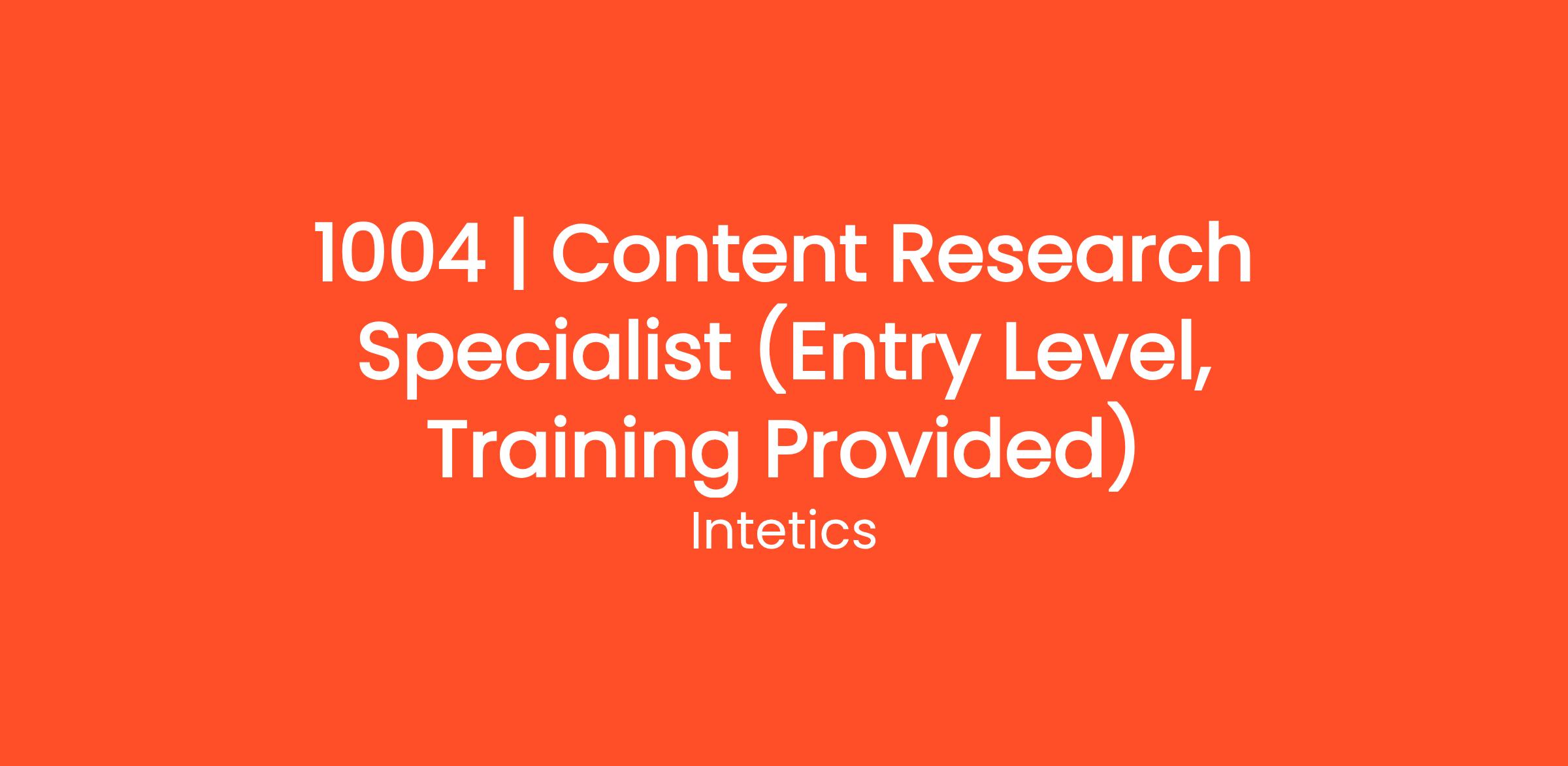 1004 | Content Research Specialist (Entry Level, Training Provided)
