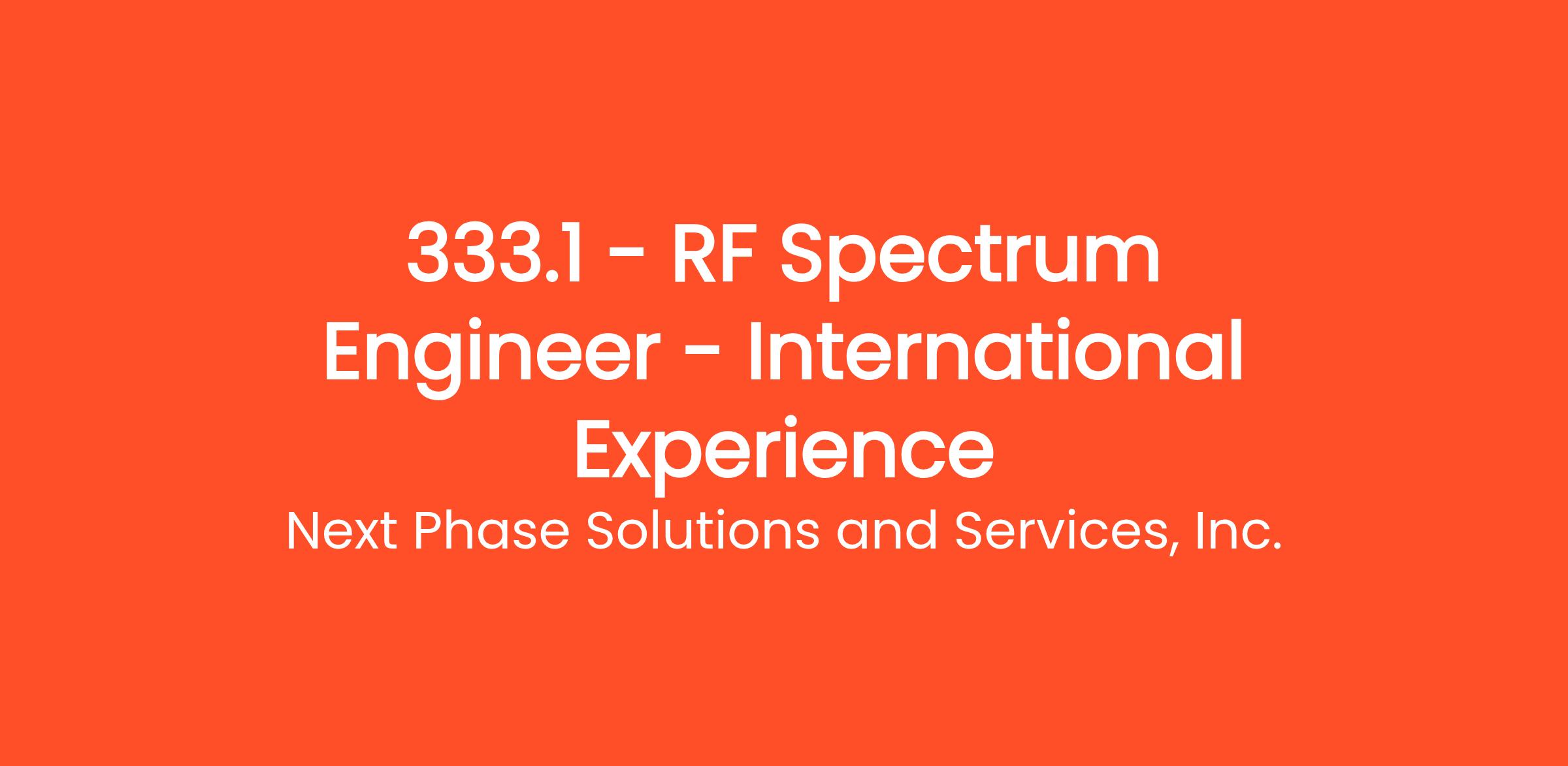 Are you an experienced RF Spectrum Engineer with deep expertise in radio frequency analysis and hands-on engagement with national and international spectrum coordination bodies?