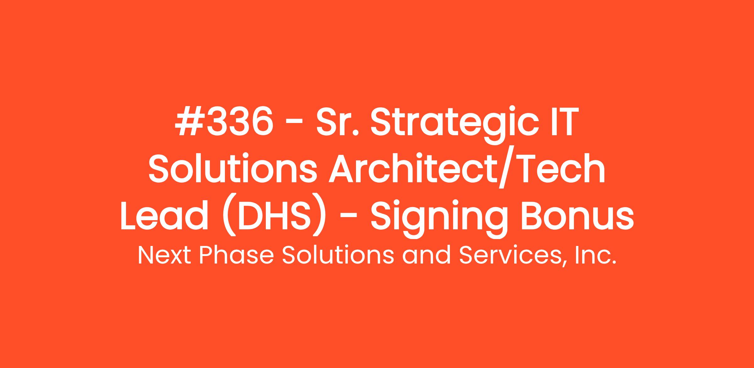 #336 - Senior Strategic IT Solutions Architect / Program Technical Lead (DHS) - $25K Signing Bonus