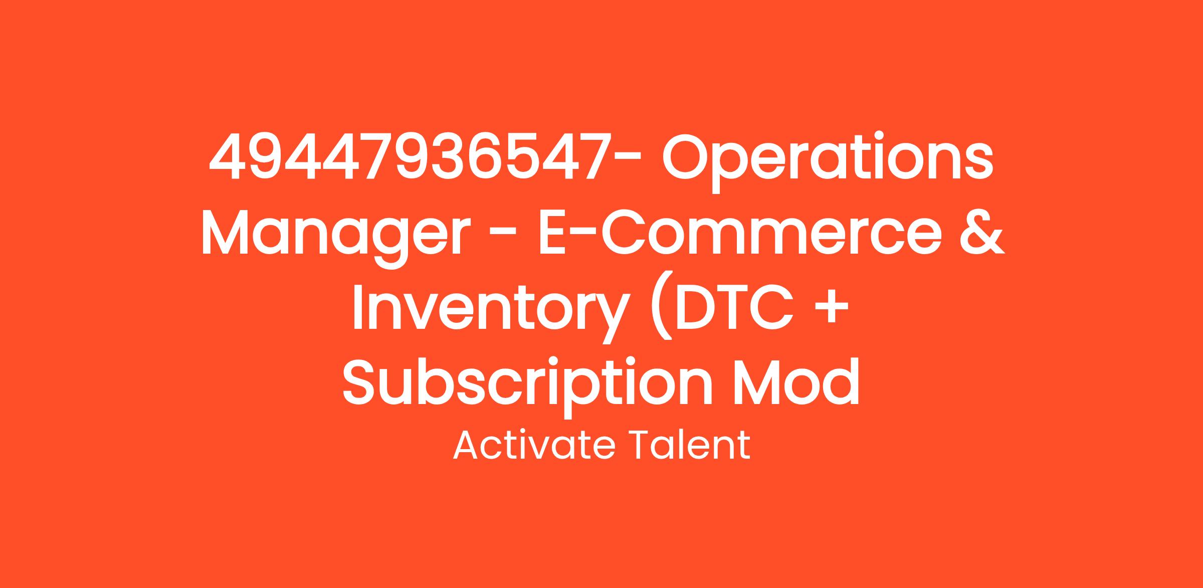 Position: Operations Manager – E-Commerce & Inventory (DTC + Subscription Model)