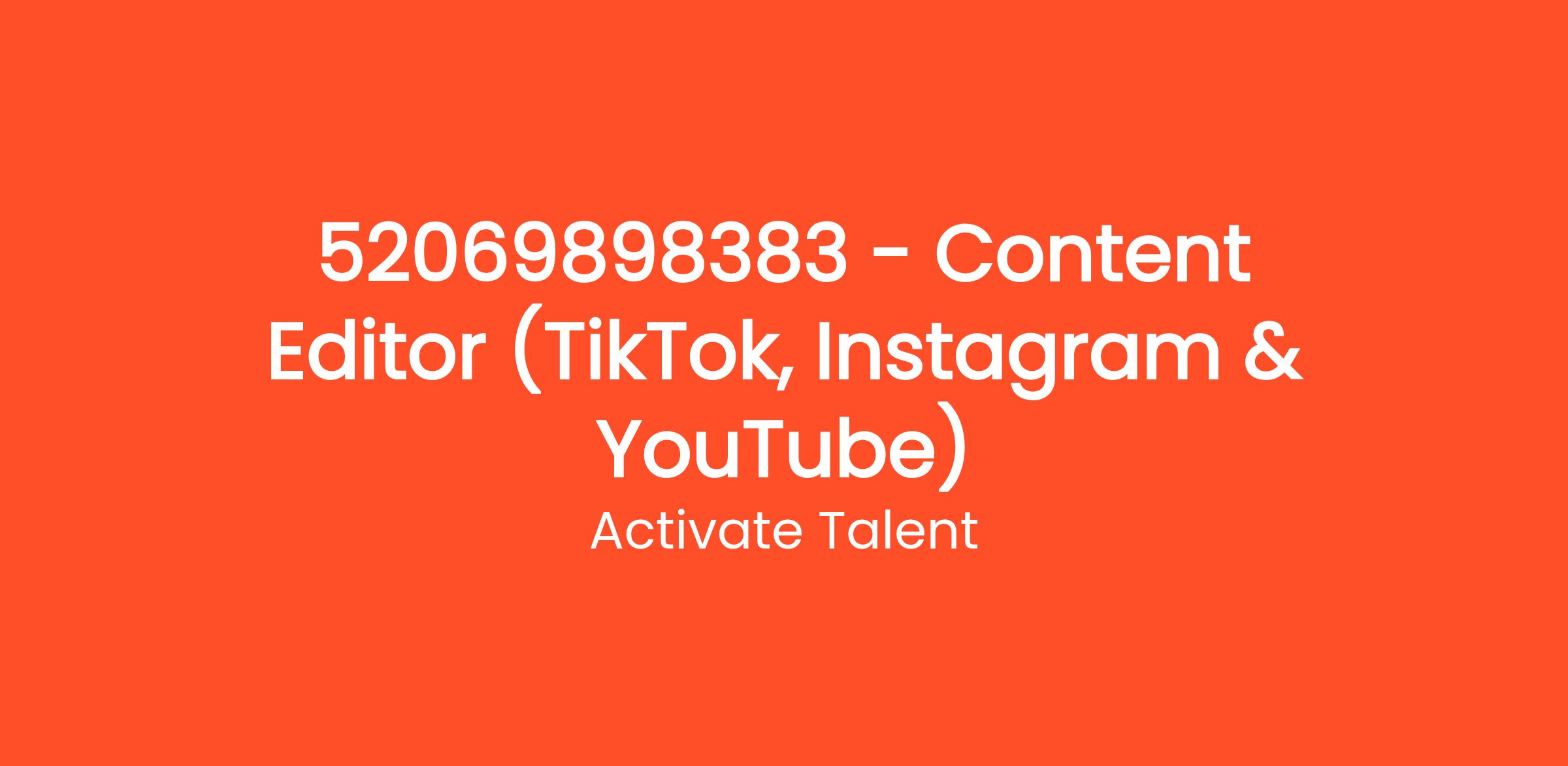 Position: Content Editor (TikTok, Instagram & Youtube)