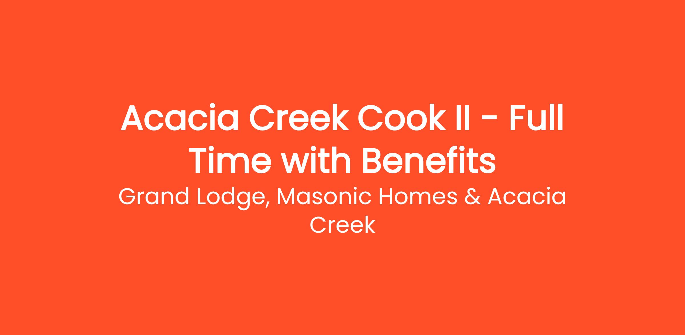 Acacia Creek Retirement Community, located on the hills above Union City, is looking for a Cook II to join our team.