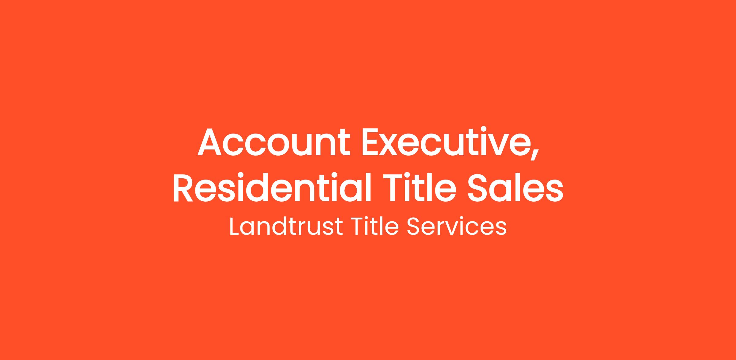 The Account Executive generates new residential real estate title/escrow business through contact with attorneys, realtors, lenders, and builders. This role also provides support to existing clients and manages a book of business.