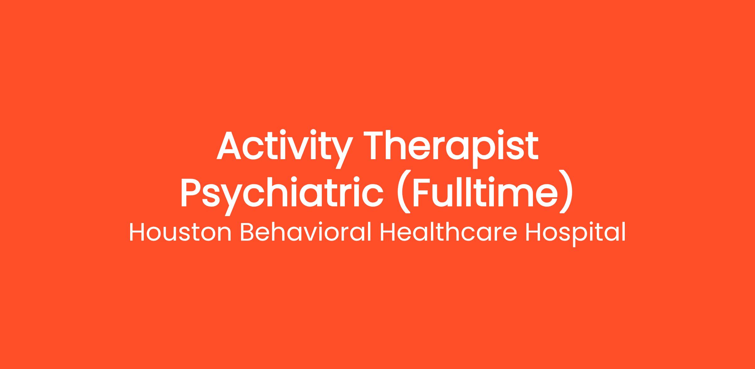 Houston Behavioral Healthcare Hospital is currently recruiting for a Fulltime Activity Therapist Psychiatric.