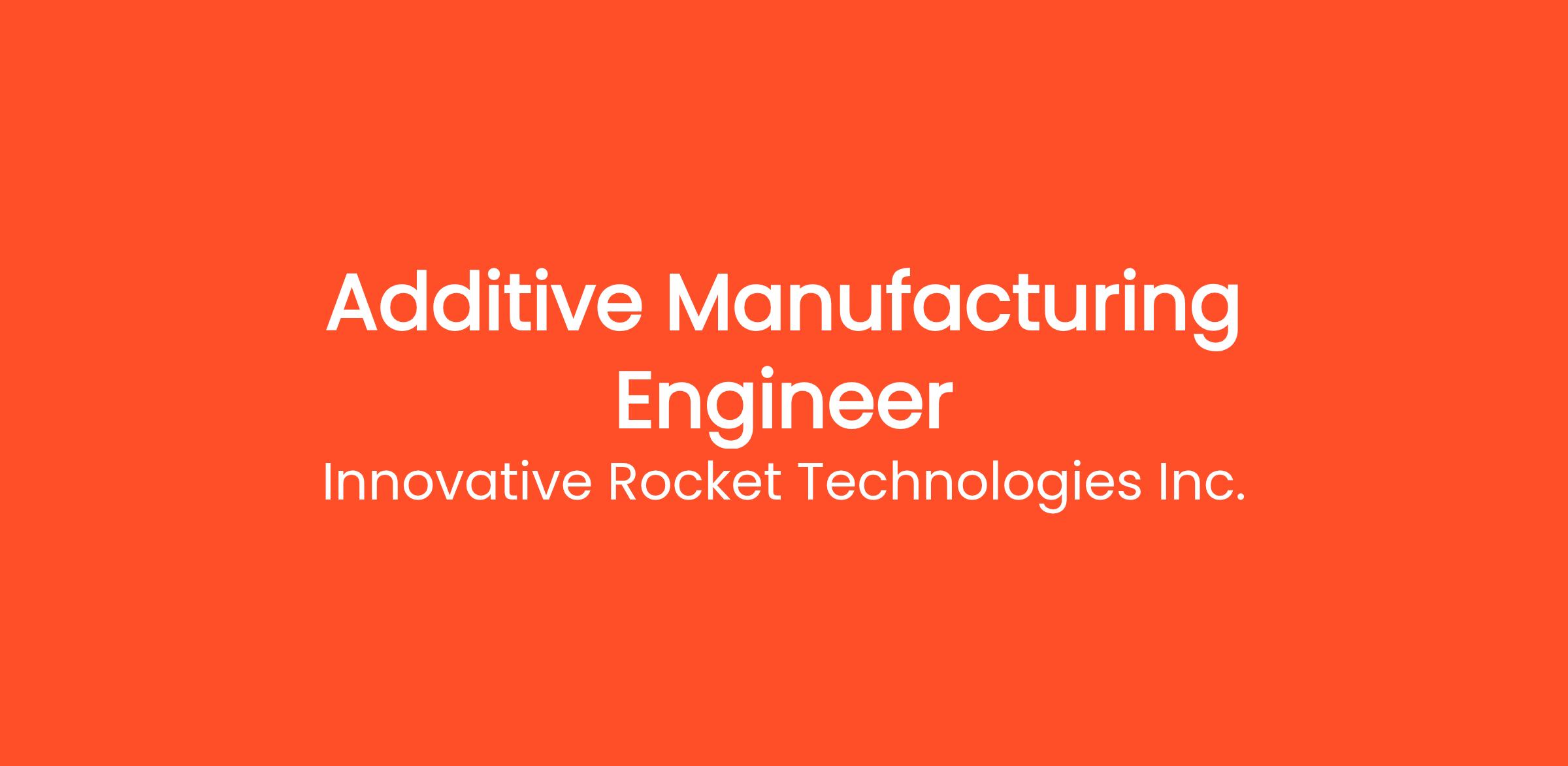iRocket is building the future of reusable launch via advanced manufacturing. We seek an Additive Manufacturing Engineer to lead the design, process development, and qualification of additively-manufactured rocket hardware.
