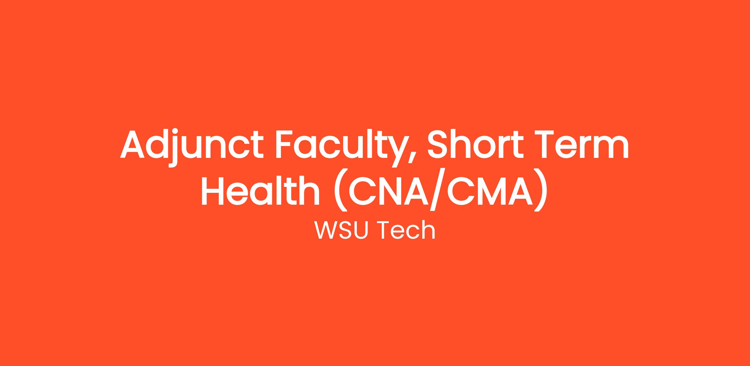The Adjunct Faculty Instructor for Short Term Health courses provides essential subject matter expertise and is responsible for teaching courses designed to prepare students for immediate employment in health-related fields.