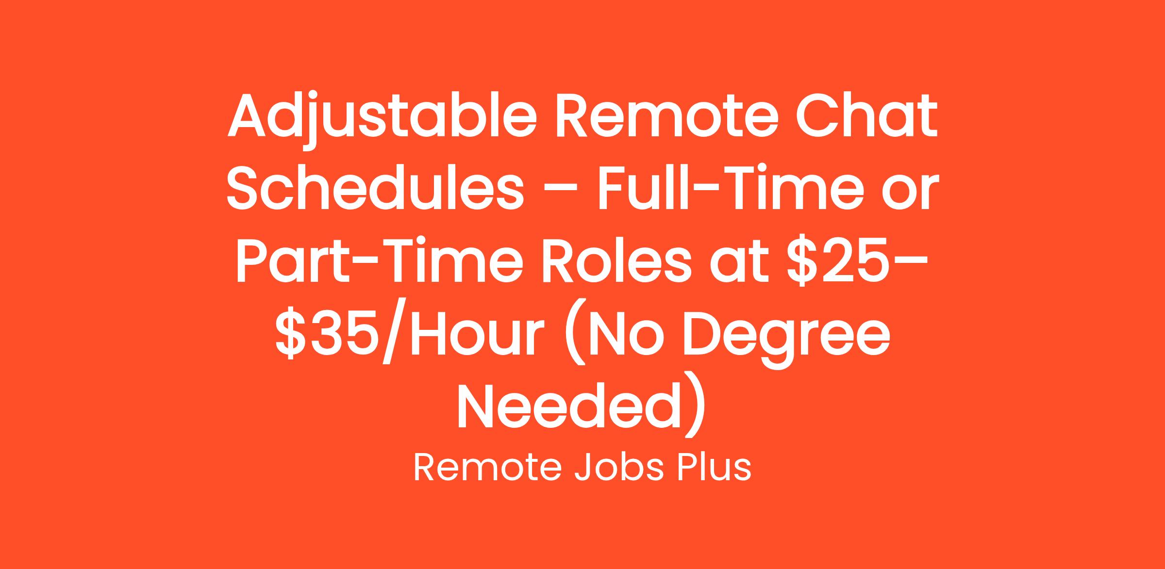 Adjustable Remote Chat Schedules – Full-Time or Part-Time Roles at $25–$35/Hour (No Degree Needed)