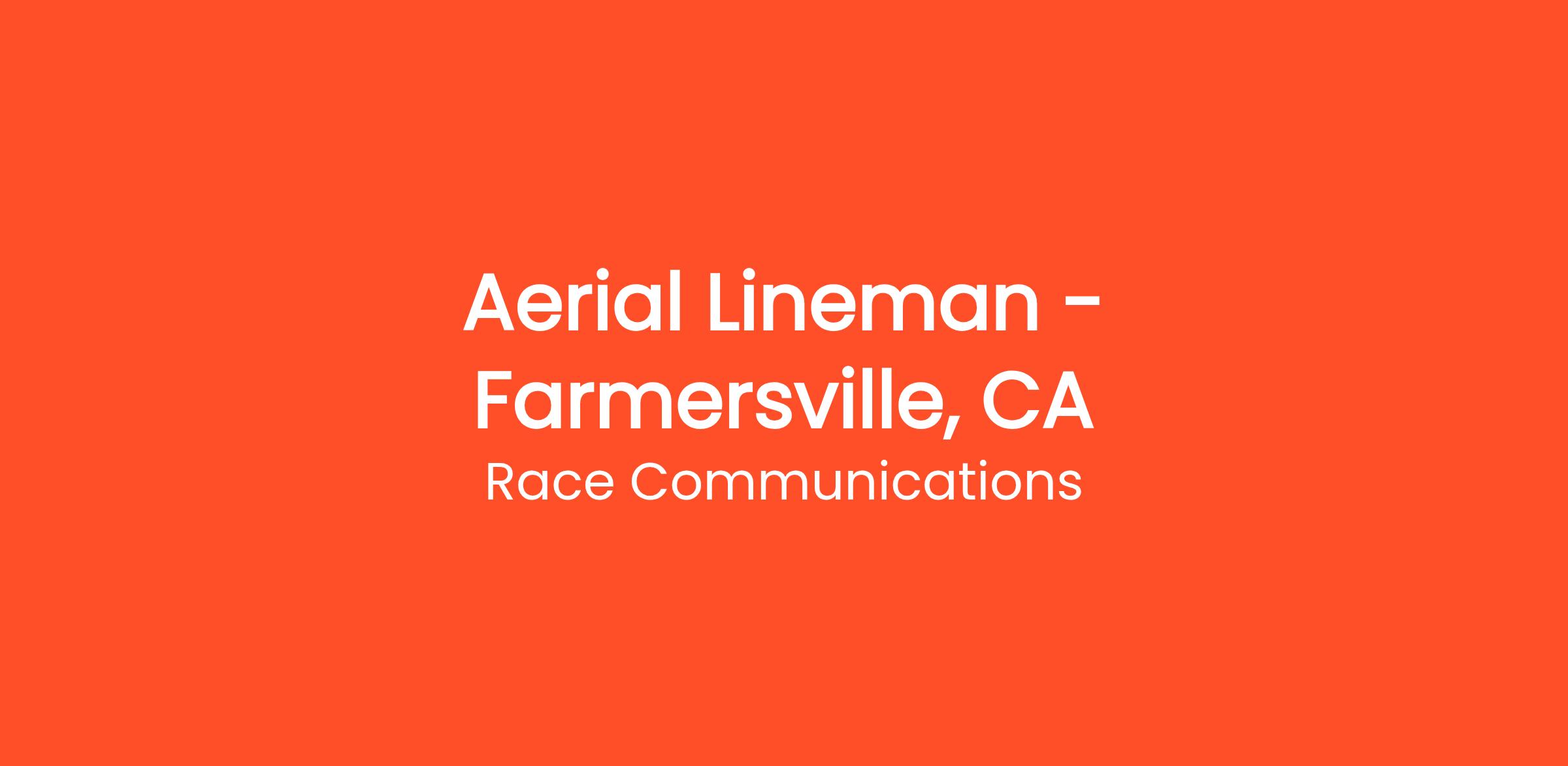 Location Status: Work will be primarily performed at a designated field worksite location based out of a central Race Communications worksite. Frequent travel to and work from other Race offices or other off-site locations will be required.
