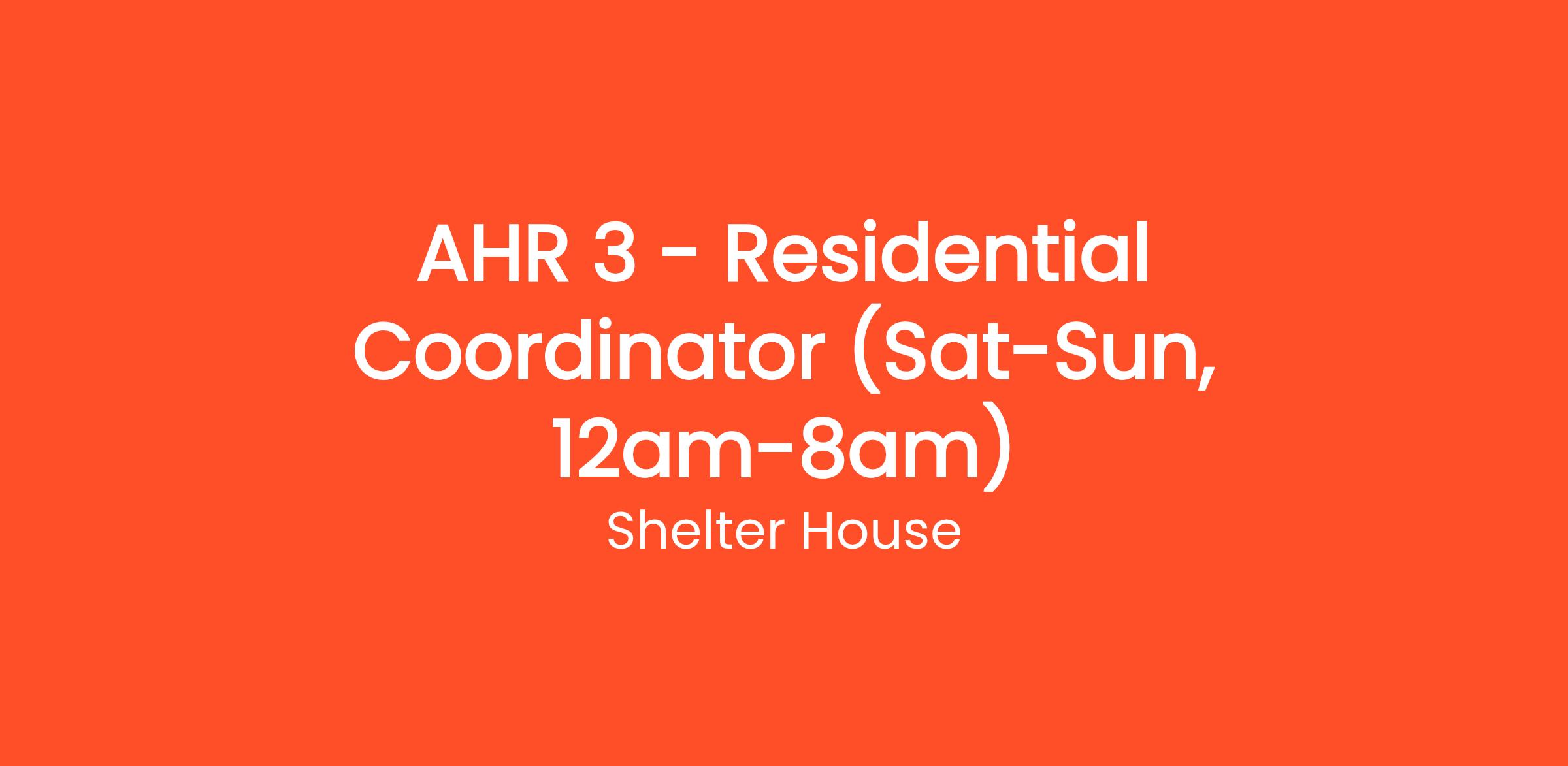 Title: Residential Coordinator (Sat-Sun, 12am-8am)