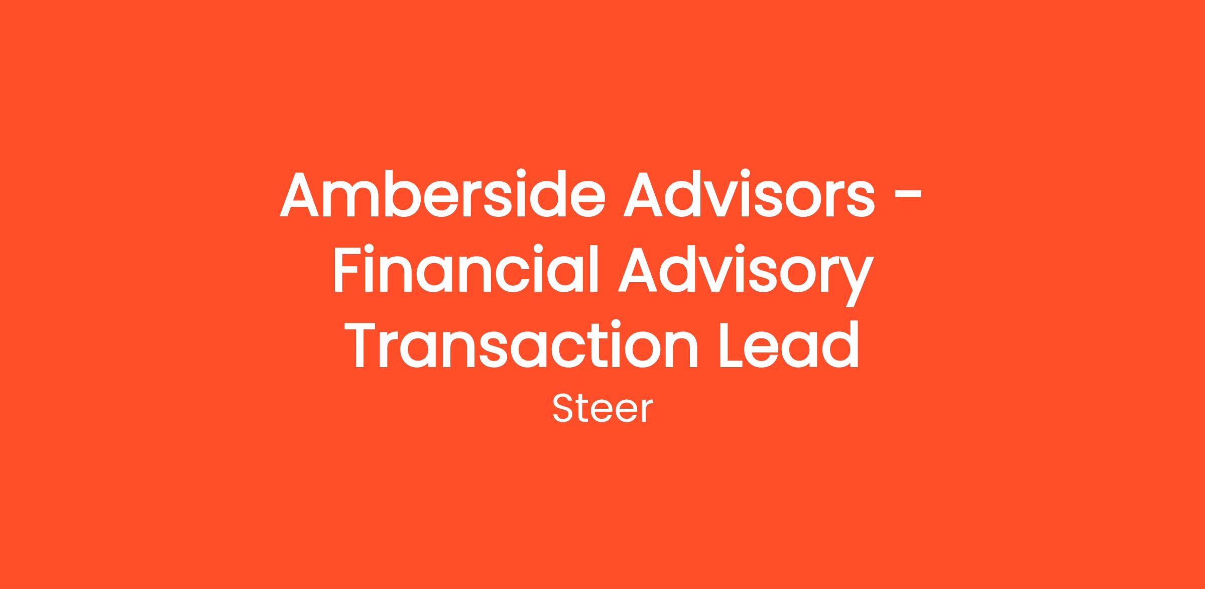 We see that adding a transaction lead to our team will support our future growth and represents a huge opportunity for the candidate to leverage the skills within the business and reputation of Amberside Advisors in the marketplace.