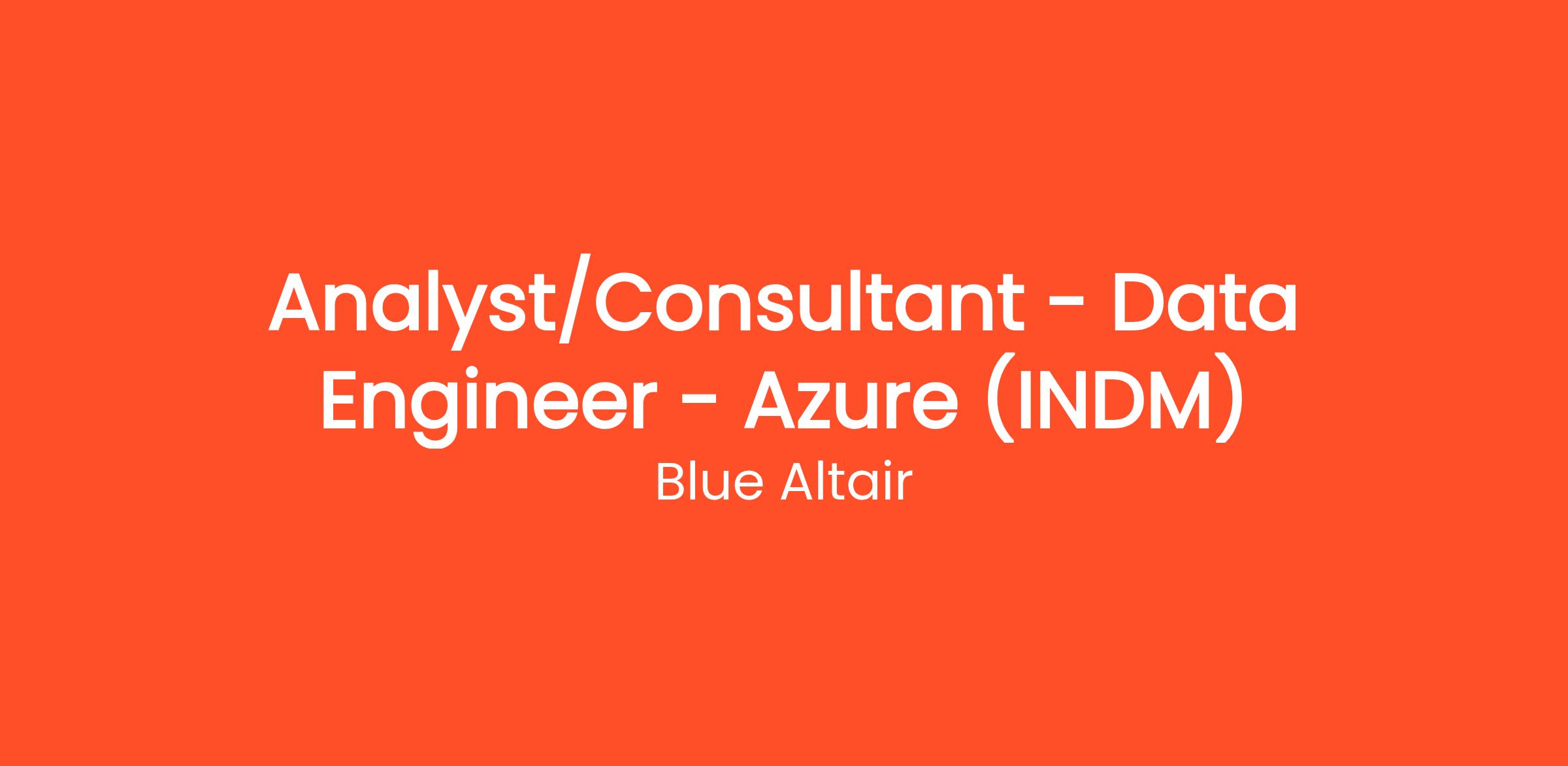 Title: Analyst/Consultant - Data Engineer