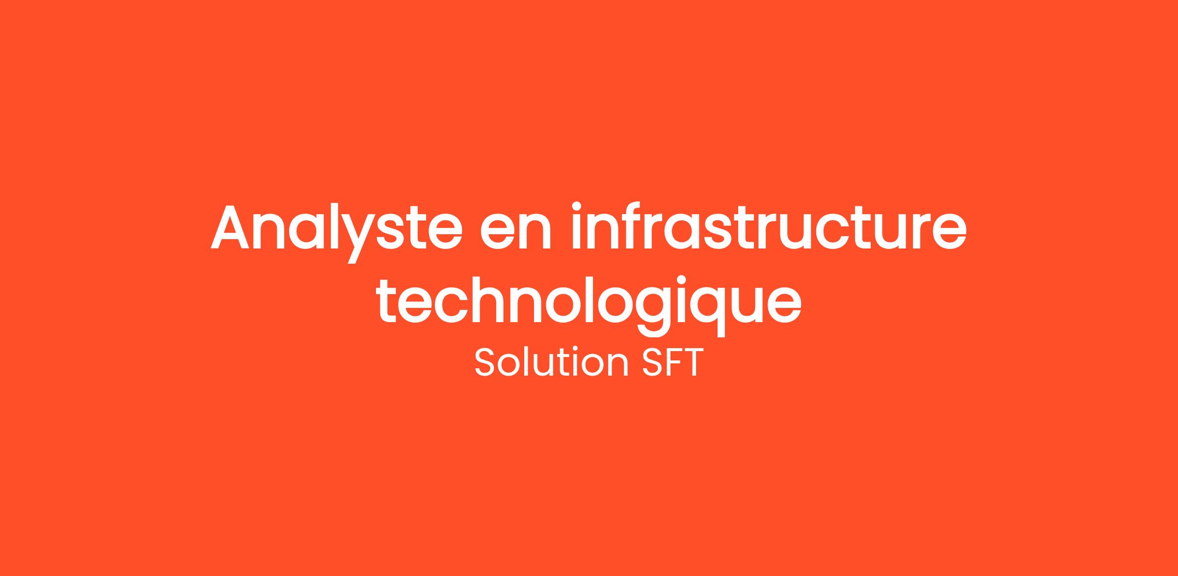 Solution SFT cherche un Analyste en infrastructure technologique dans ce poste vous interviendrez dans le cadre d'un projet client qui relève du secteur public dans la ville du Québec