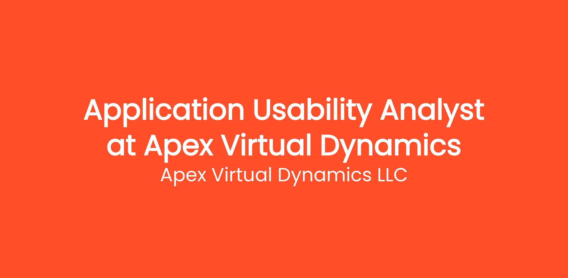 Are you highly organized and looking for the perfect entry-level opportunity? Apex Virtual Dynamics LLC is currently seeking a Application Usability Analyst (Entry Level - Remote) to join our rapidly growing remote team. If you've been searching for remote jobs no degree or overnight remote jobs, this is the exact role you've been looking for. No degree required and no prior experience is necessary—we provide comprehensive training to all new hires! You will be responsible for critical daily operations, managing secure platforms, and contributing to our vibrant digital culture.