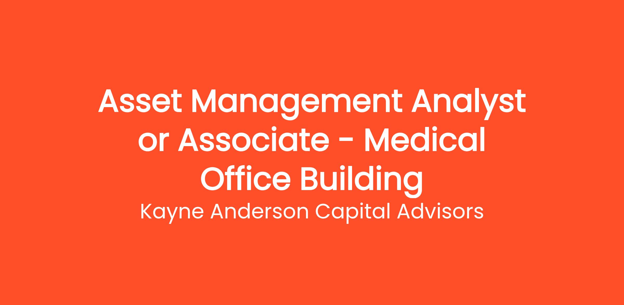 Title: Medical Office Building Asset Management Analyst or Associate