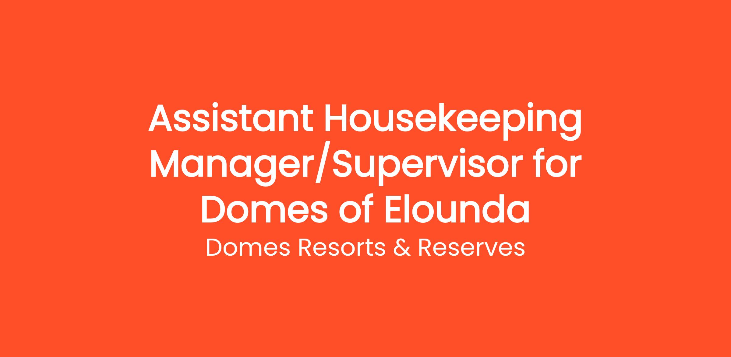 The Assistant Housekeeping Manager/ Housekeeping Supervisor at Domes Resorts oversees the daily housekeeping operations, ensuring that cleanliness standards and guest satisfaction are met. This individual supervises housekeeping team members, coordinates cleaning schedules, assists in managing supplies, and provides hands-on support to the team.