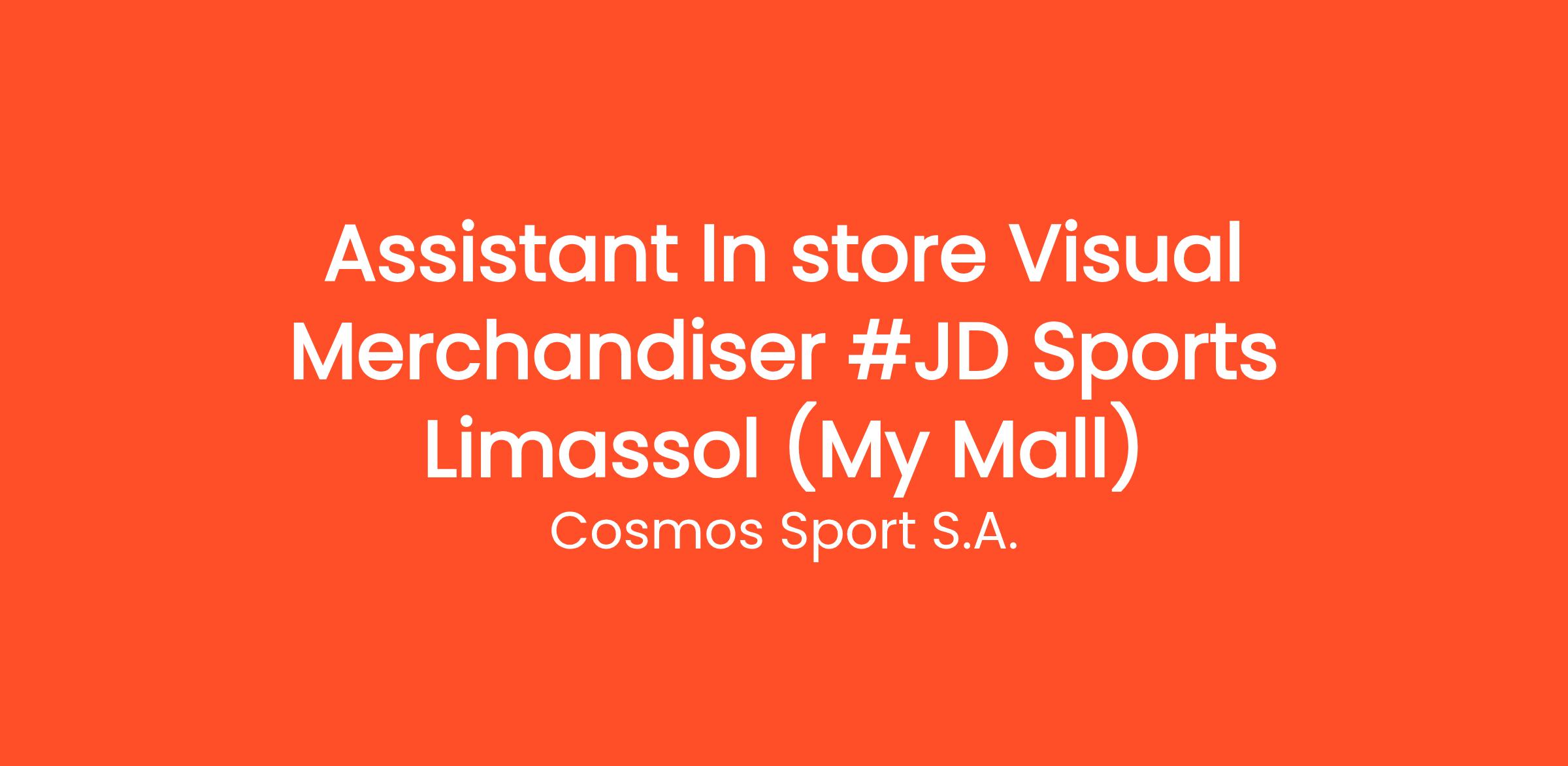We are looking for talented and passionate Assistant Visual Merchandiser for our JD Sports Store in My mall Limassol ! If you are a team player and you love Sports and Fashion, we want to meet you!
