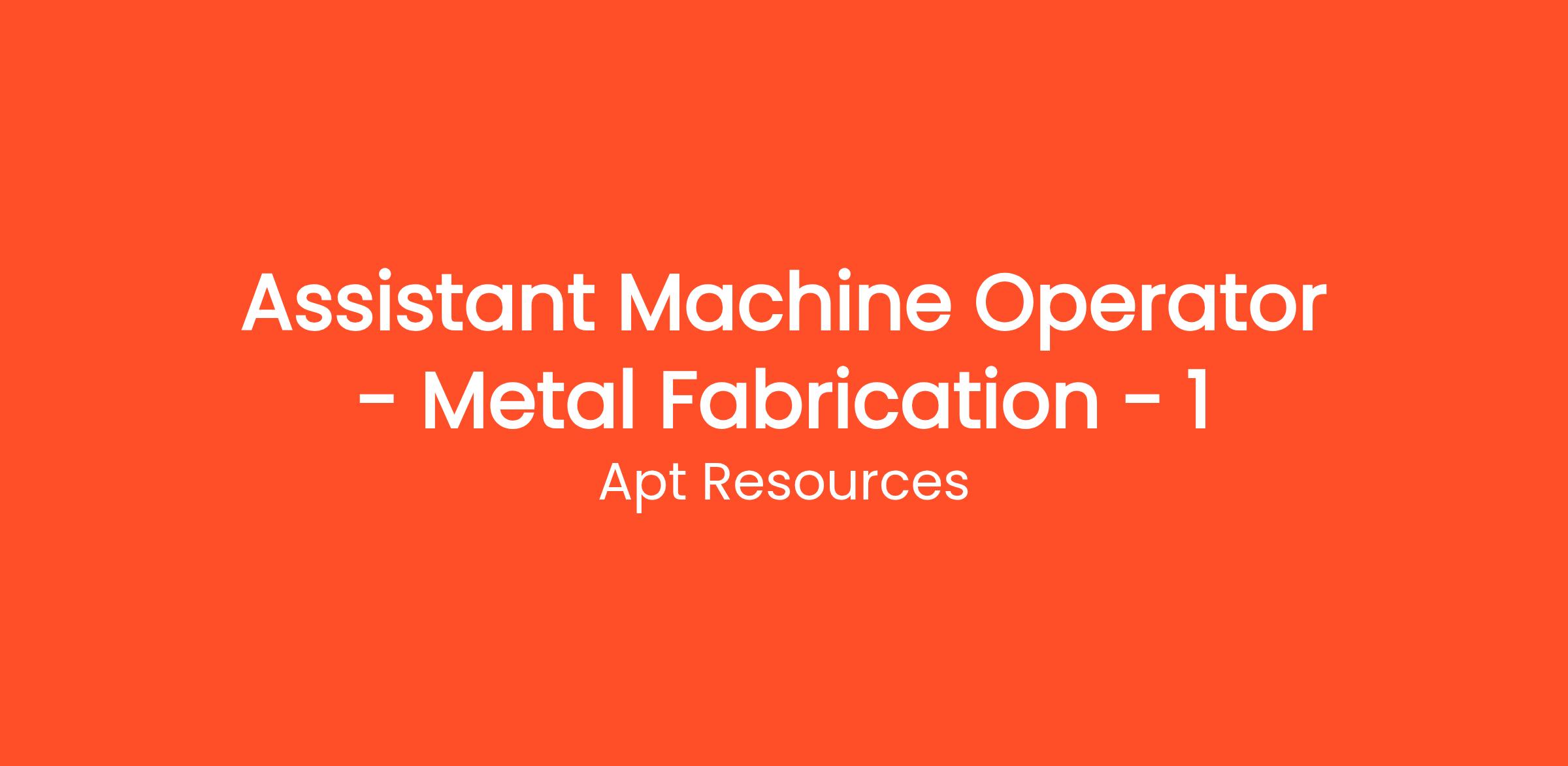 Apt Resources is excited to announce an opening for an Assistant Machine Operator in the Metal Fabrication department of our client, a leading manufacturing company. In this role, you will assist in the operation of various machinery used in metal fabrication processes, ensuring productions run smoothly and efficiently.