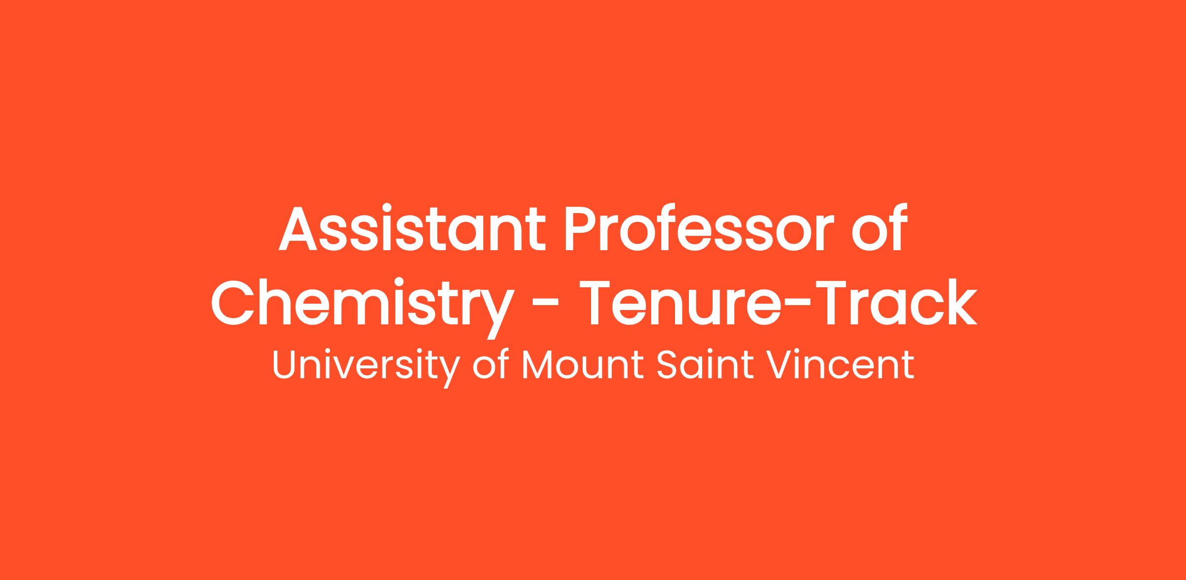 The School of Natural and Mathematical Sciences at the University of Mount Saint Vincent invites applications for two tenure-track Assistant Professor positions in Chemistry beginning Fall 2026. We seek candidates with expertise in Biochemistry, Organic Chemistry, or Analytical Chemistry, with research interests that may include (but are not limited to) synthetic, environmental, medicinal, or chemical biology (for Biochemistry).