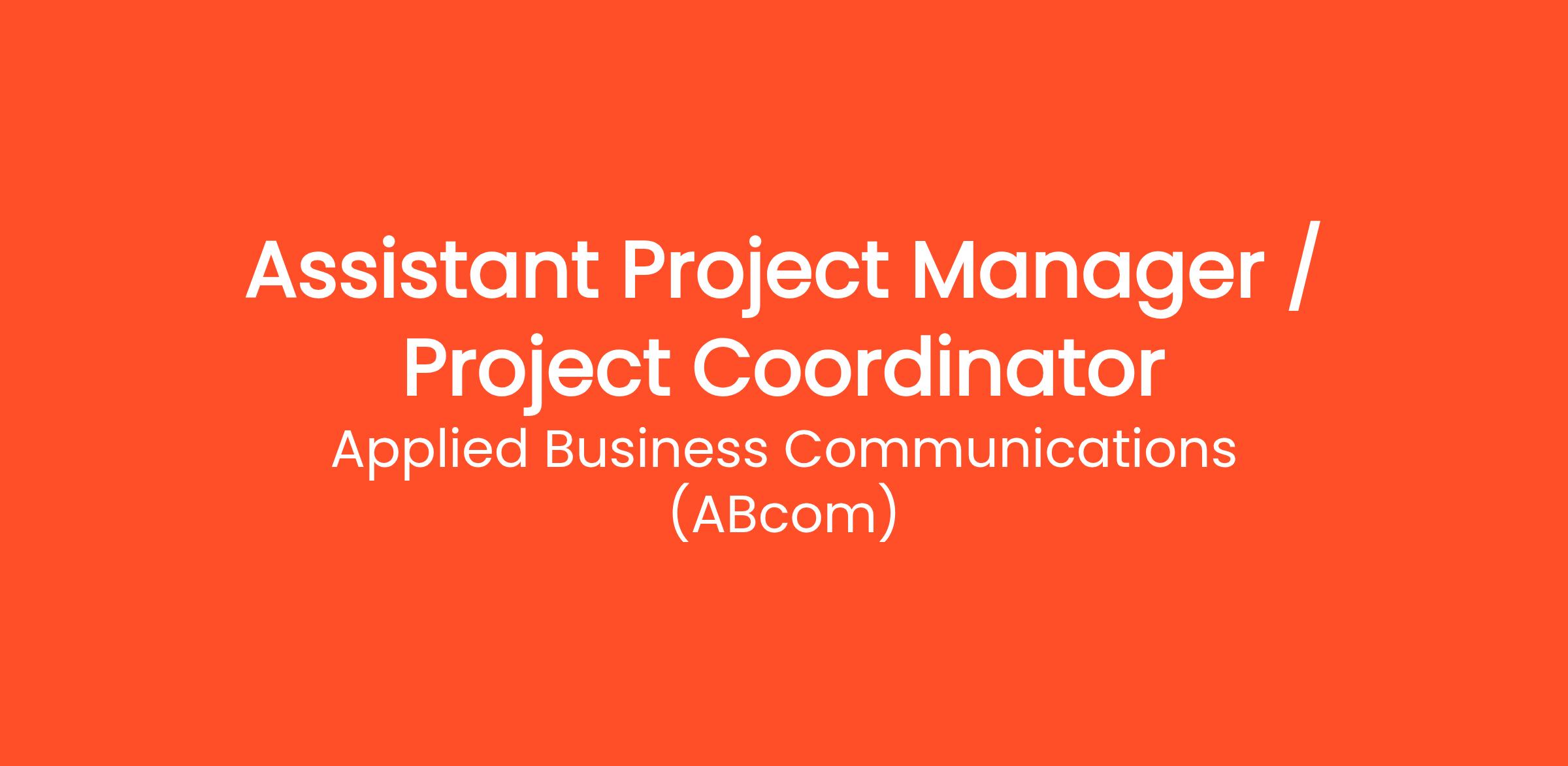 ABcom is seeking Assistant Project Manager/Project Coordinator to support our Project Managers. Project Managers are responsible for driving the entire construction project, from start to successful completion. The Assistant Project Manager/Project Coordinator helps the Project Managers in all the duties it takes to achieve this goal.